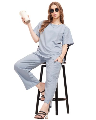 Olive Cruse Grey Solid Womenâs Co-ord Set â Top and Pyjama