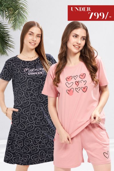 Indulge in luxurious nightwear that combines style, comfort, and durability. Explore our wide range of night suits, short nighties, pyjama sets, and more—crafted for relaxation and a peaceful sleep. Shop now and experience the comfort of WEET’s nightwear collection!