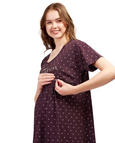 WEET Women’s Cotton Heart Knee Length Maternity Nighty ,Feeding Nighty Purple 9405
