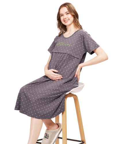 WEET Women’s Cotton Heart Knee Length Maternity Nighty ,Feeding Nighty Grey 9408