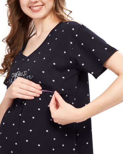 WEET Women’s Cotton Heart Knee Length Maternity Nighty ,Feeding Nighty Black 9409