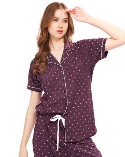 WEET Women’s Cotton Shirt & Pyjama Set | Printed Nightwear Nightsuit 122A