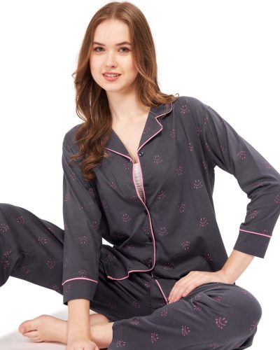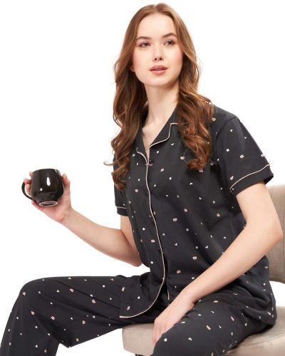 WEET Women’s Cotton All Over Printed Shirt & Payjama Nightsuit Set Grey 118