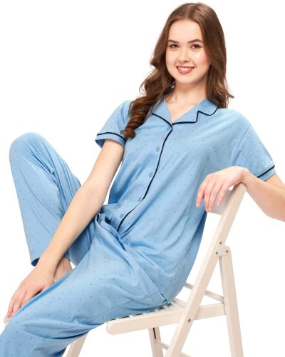 WEET Women’s Cotton Shirt & Pyjama Set | Printed Nightwear Nightsuit 122C