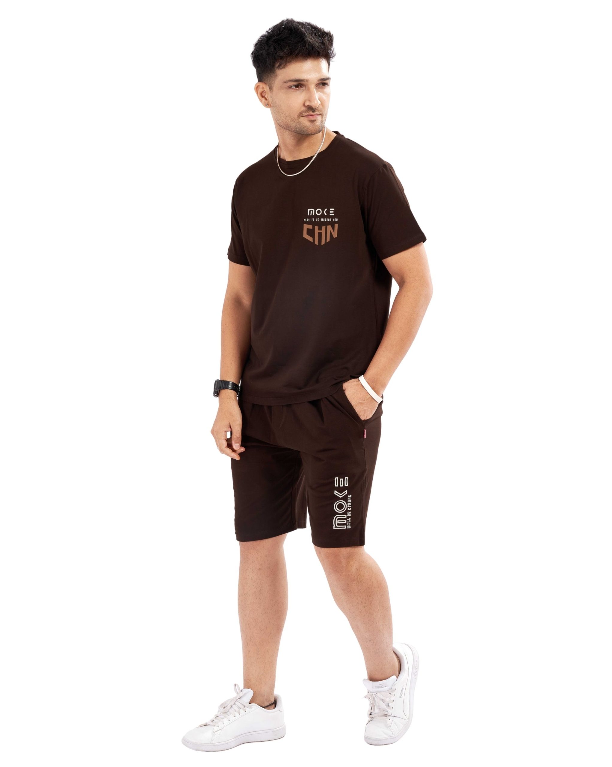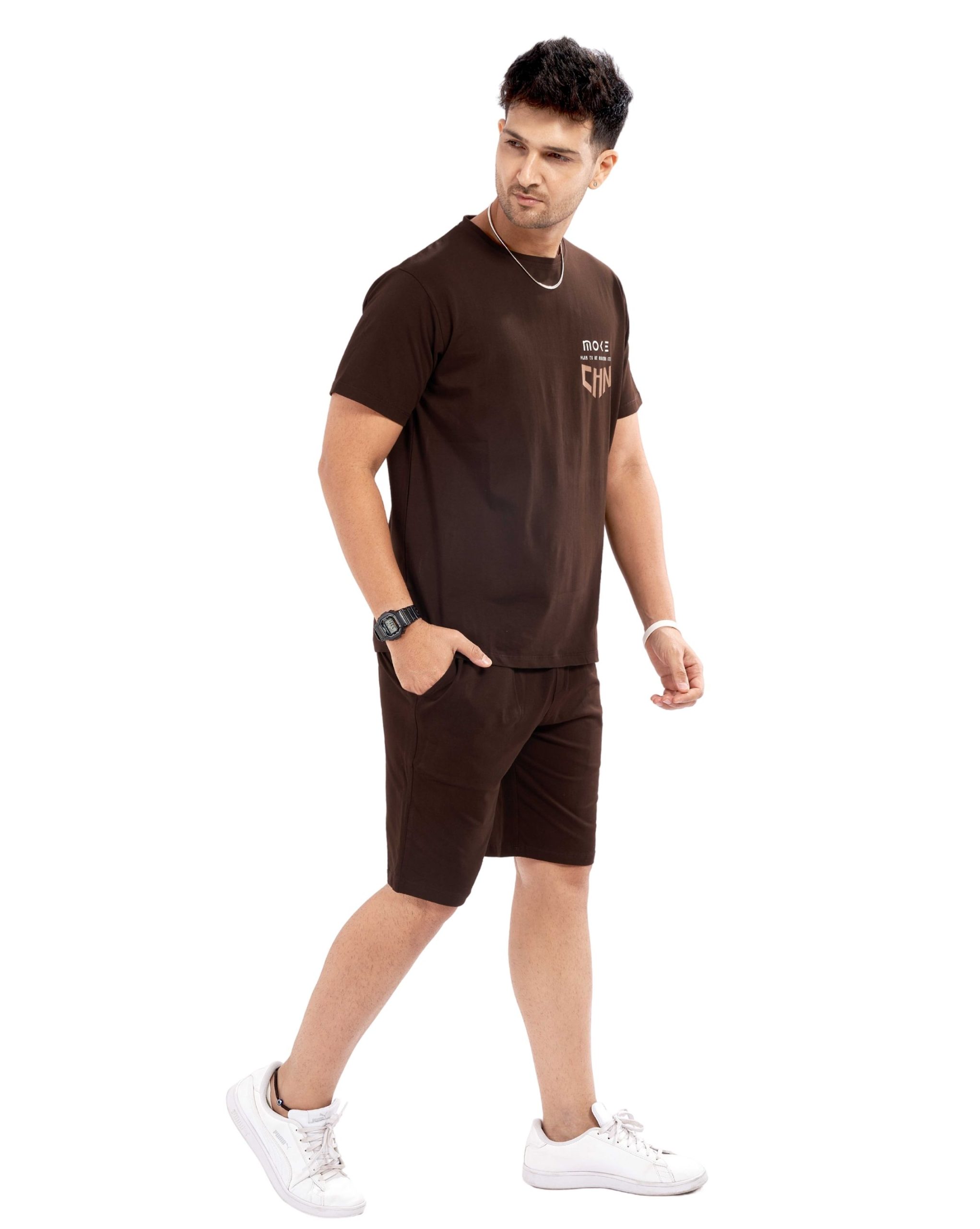 Elevate your casual wardrobe with the Men’s Dark Brown Casual Shorts Set. This ensemble features a tasteful minimalist graphic on a comfortable dark brown T-shirt, paired with coordinating shorts, making it ideal for casual outings or relaxation at home. Crafted from a high-quality cotton blend, it provides all-day comfort and flexibility, complemented by an adjustable waistband for a perfect fit.