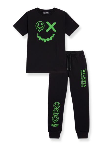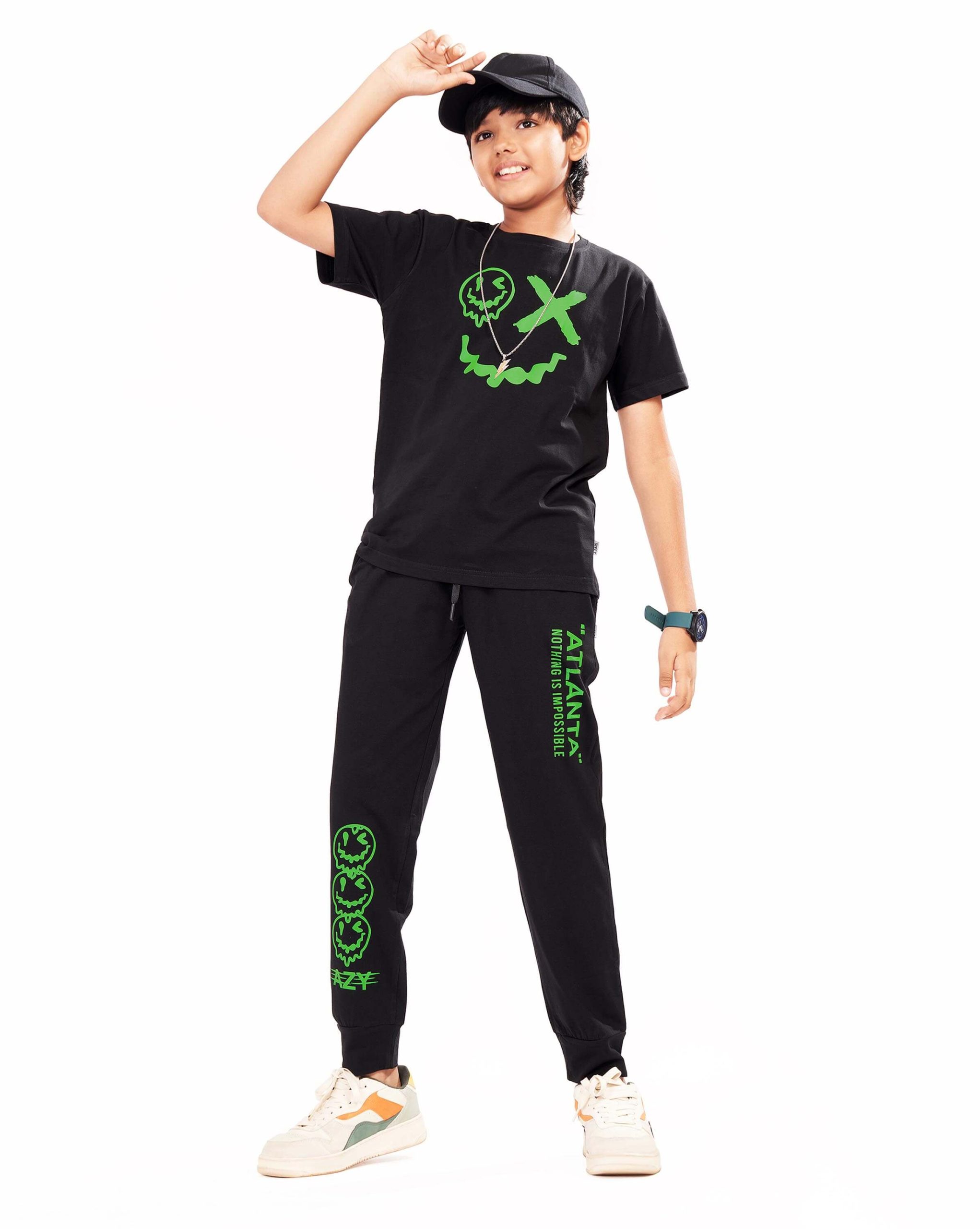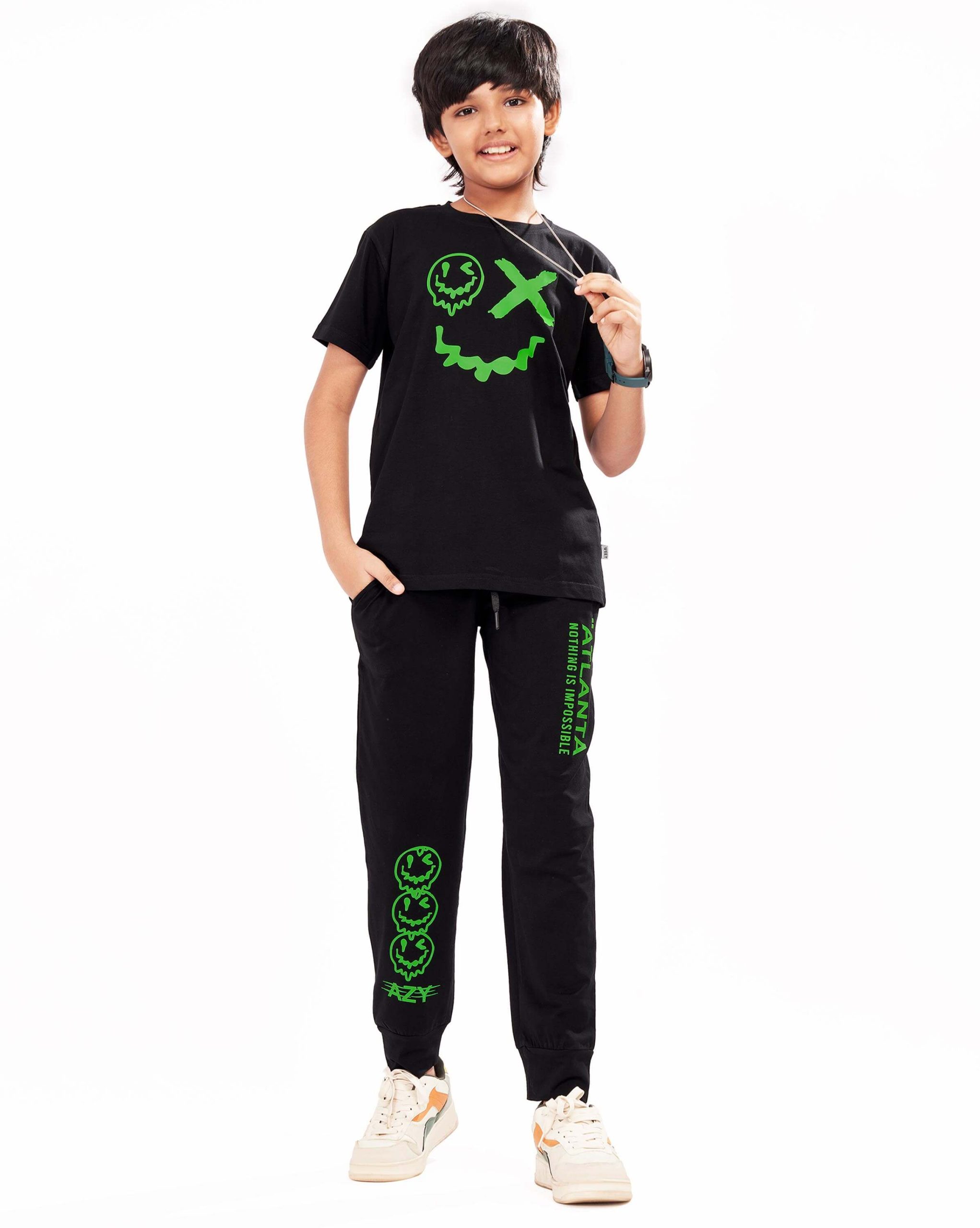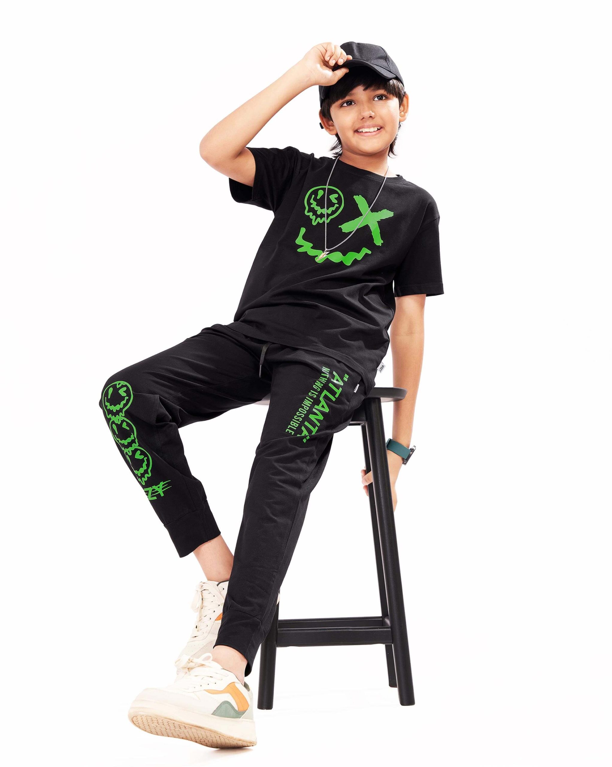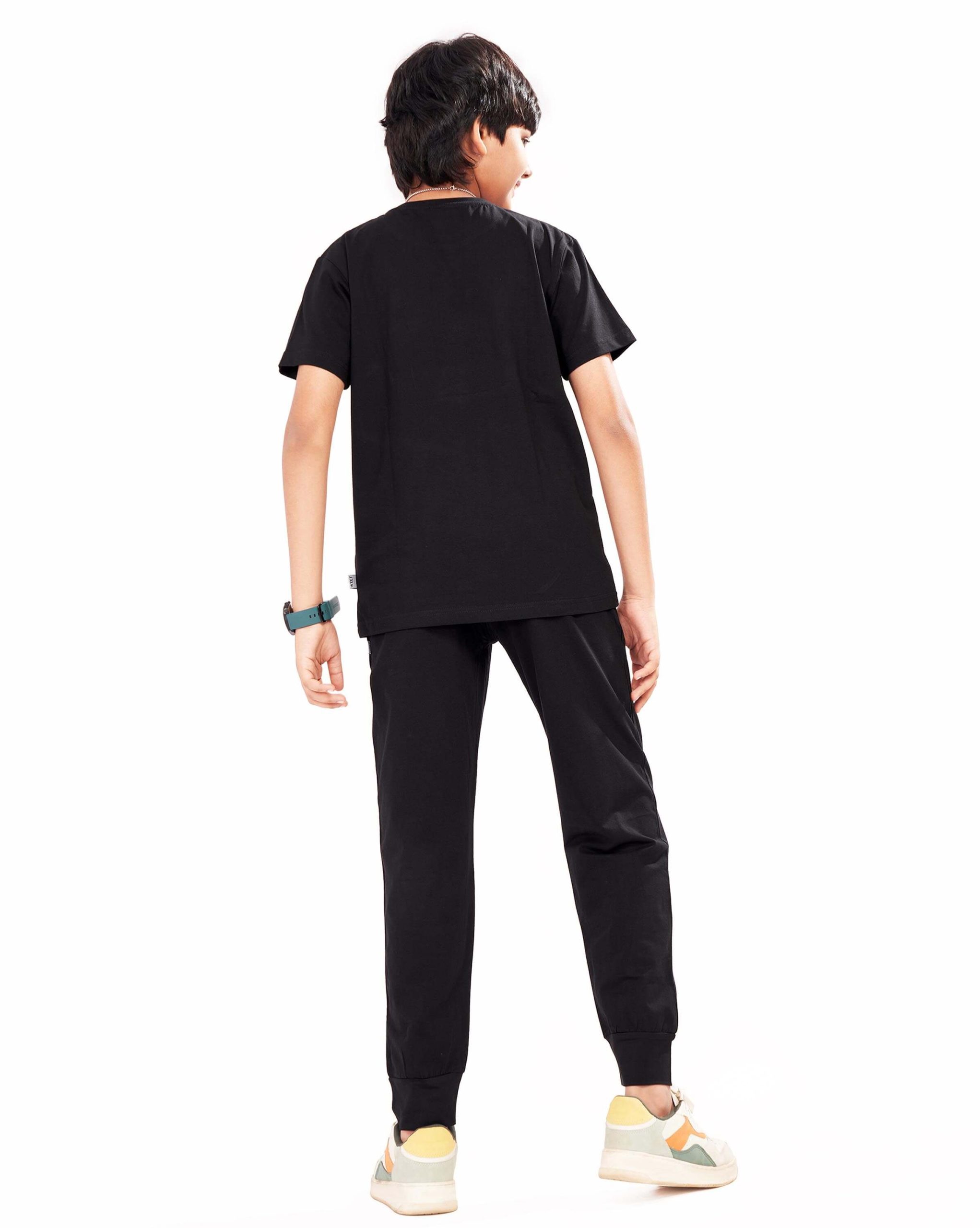 WEET Boys Cotton Pyjama Set with T-Shirt | Printed Nightsuit & Coord Set for Kids – Black