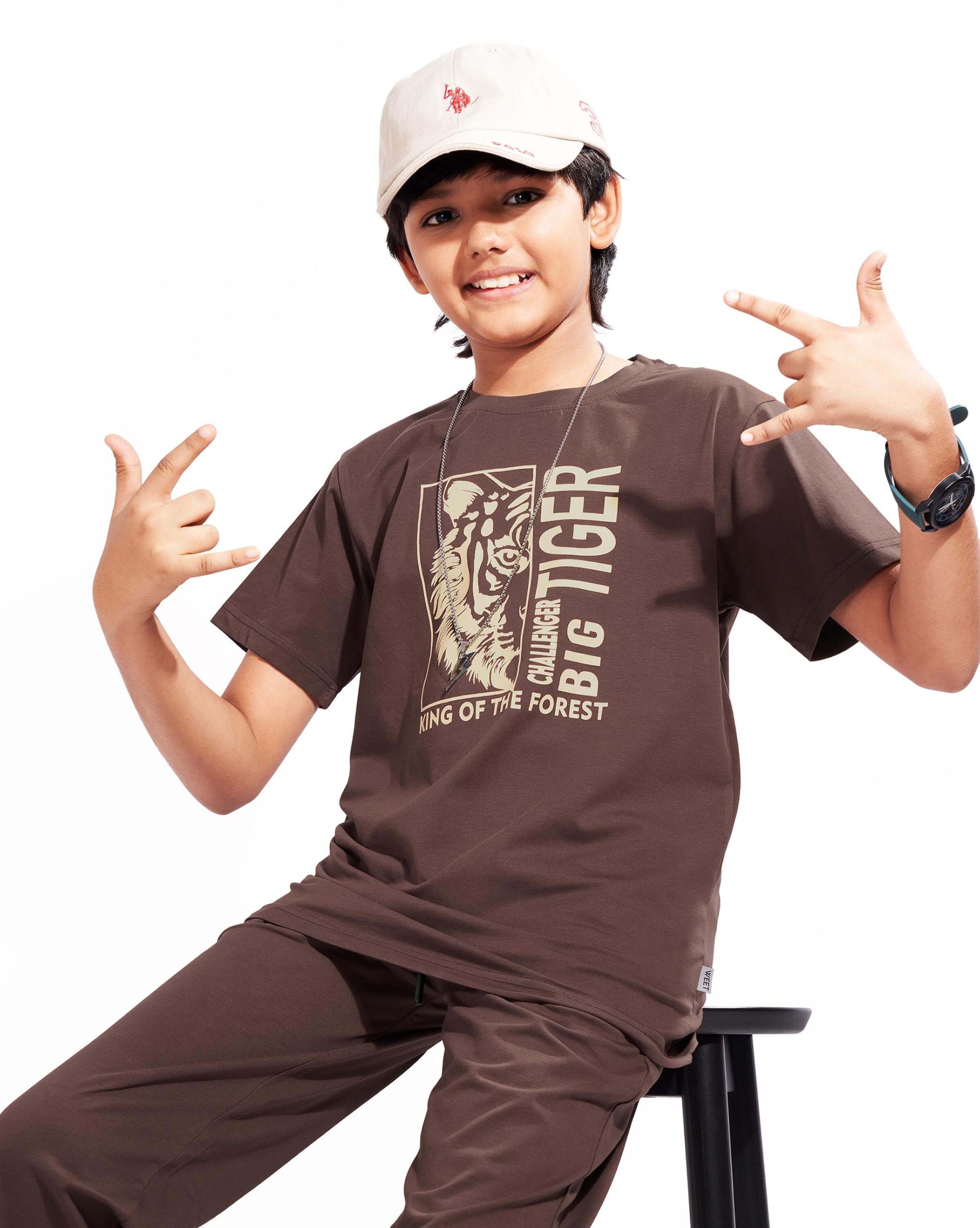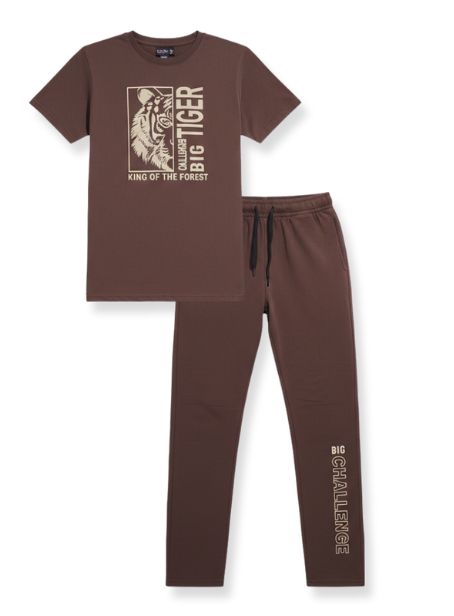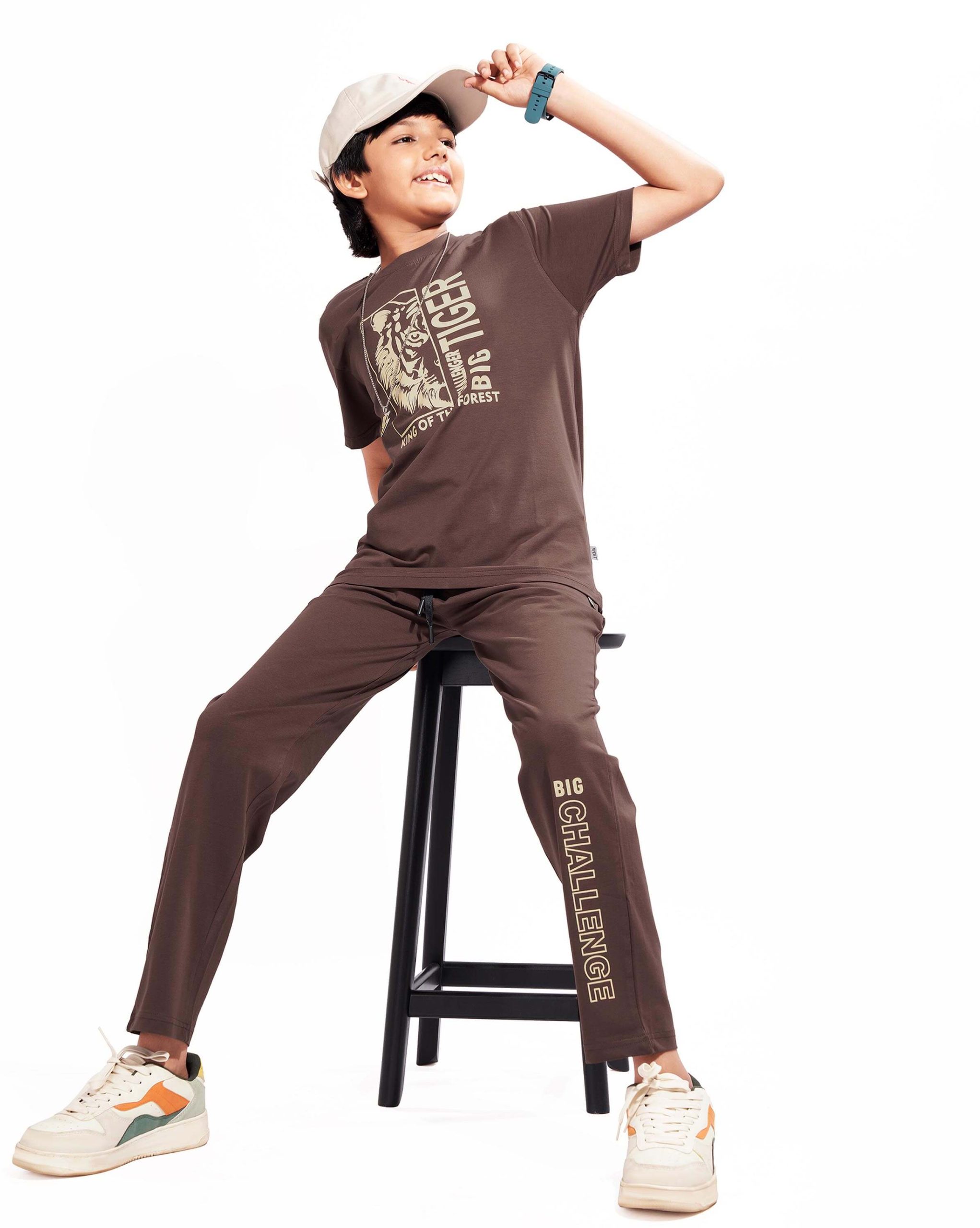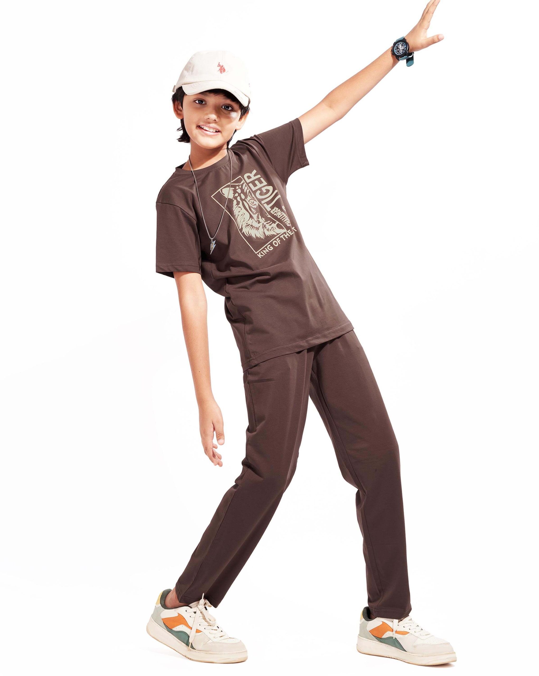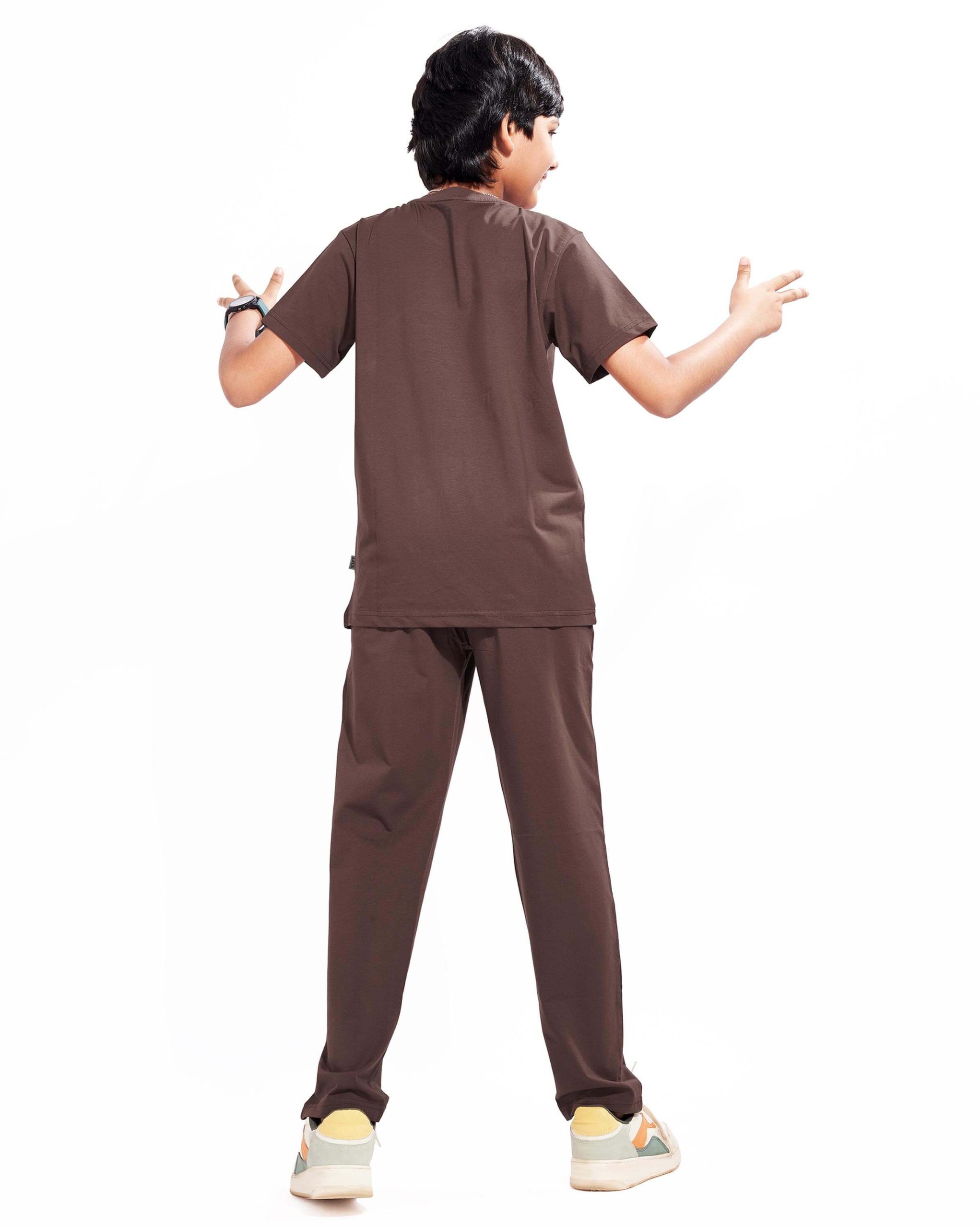 WEET Boys Cotton Pyjama Set with T-Shirt | Printed Nightsuit & Coord Set for Kids –Chocolate Brown