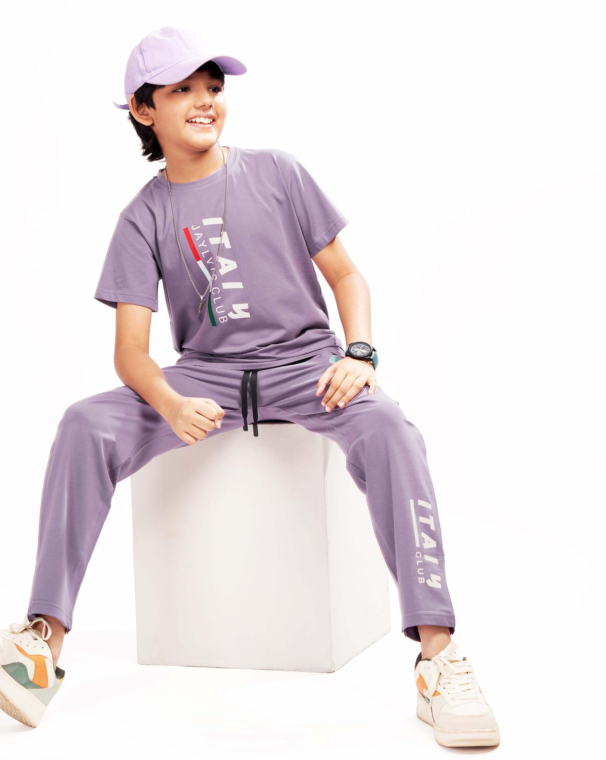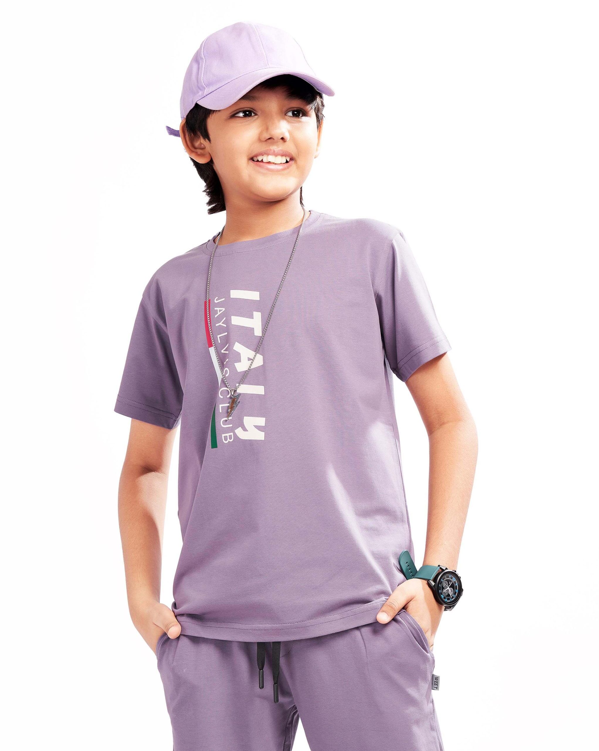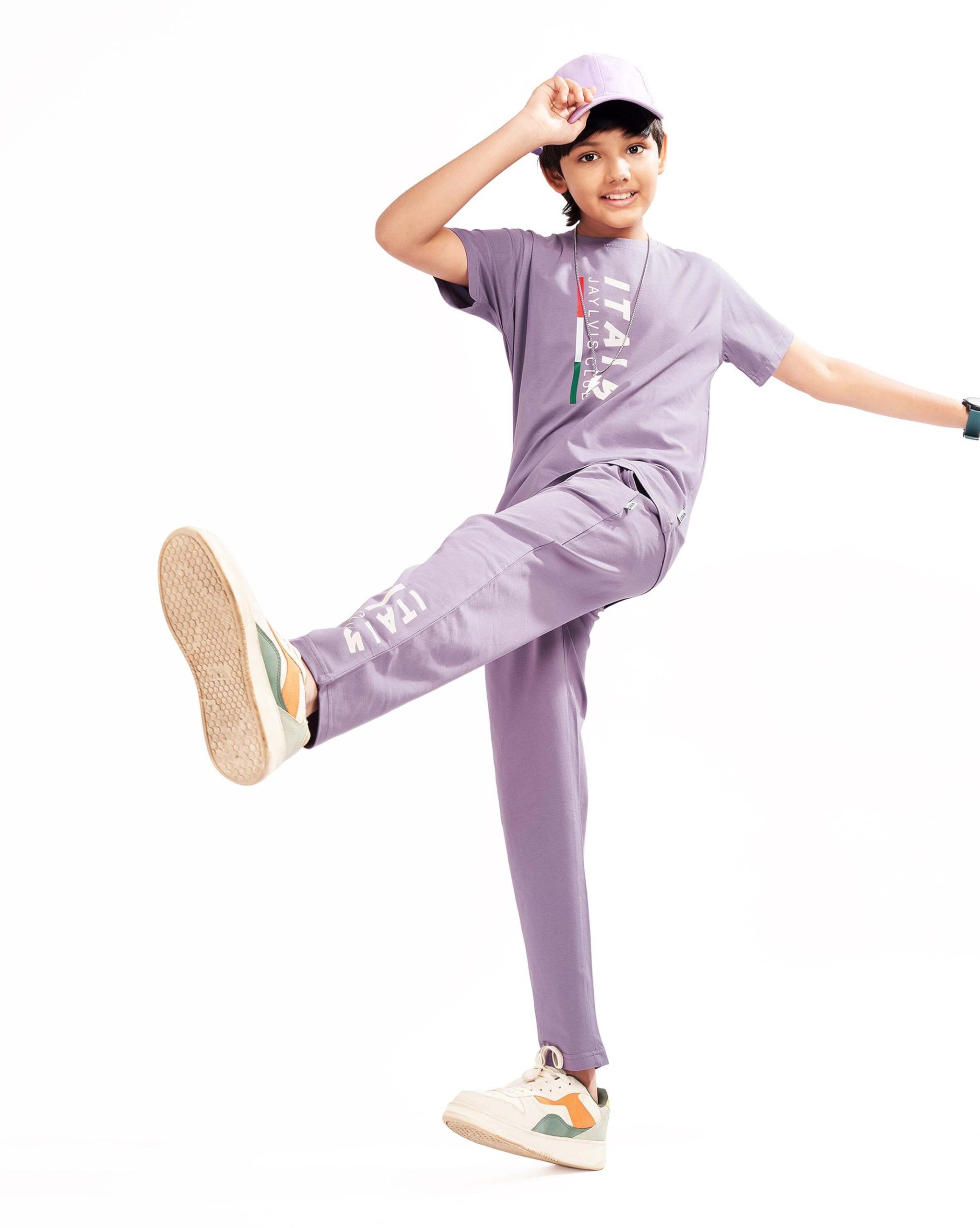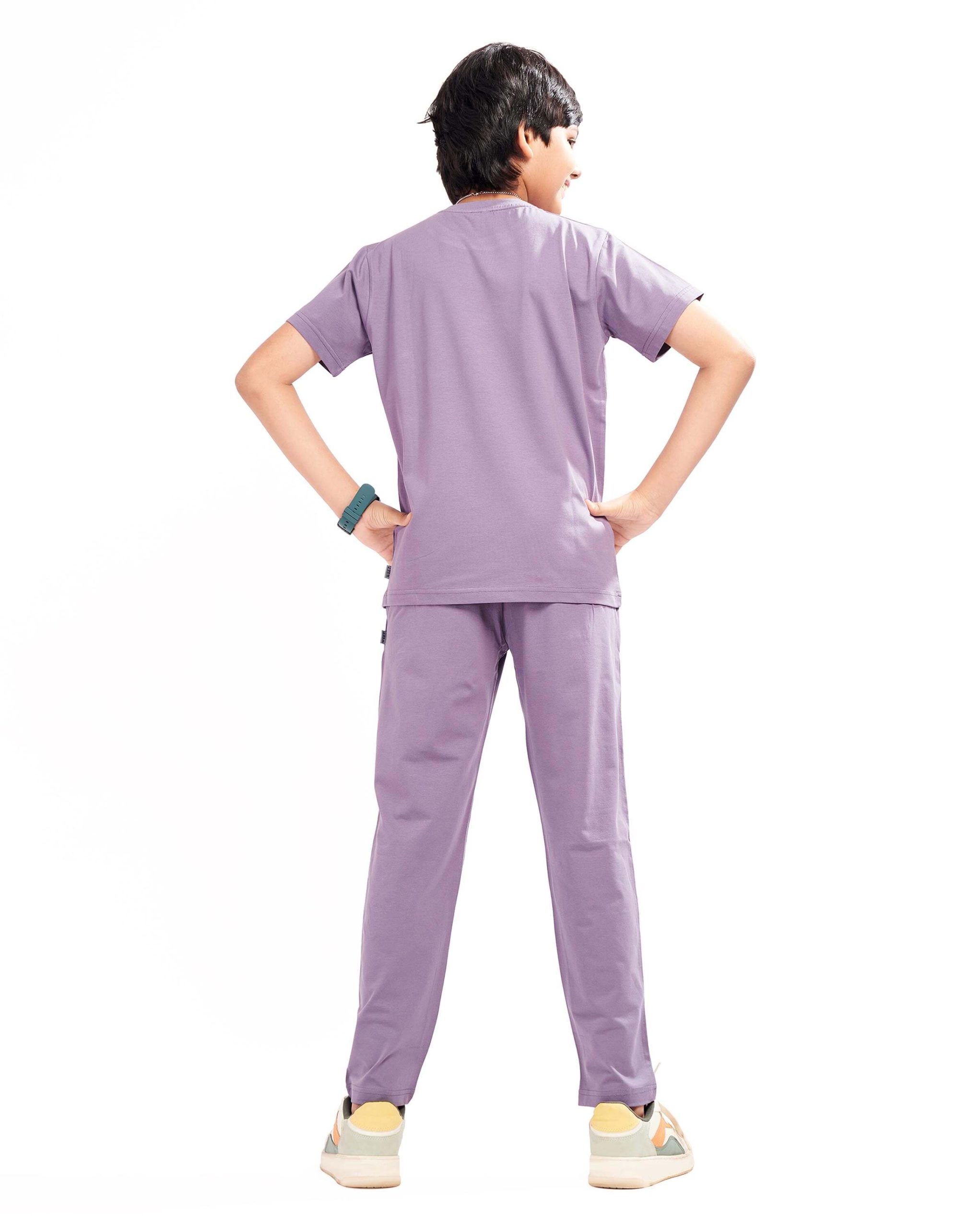 WEET Boys Cotton Pyjama Set with T-Shirt | Printed Nightsuit & Coord Set for Kids – Purple