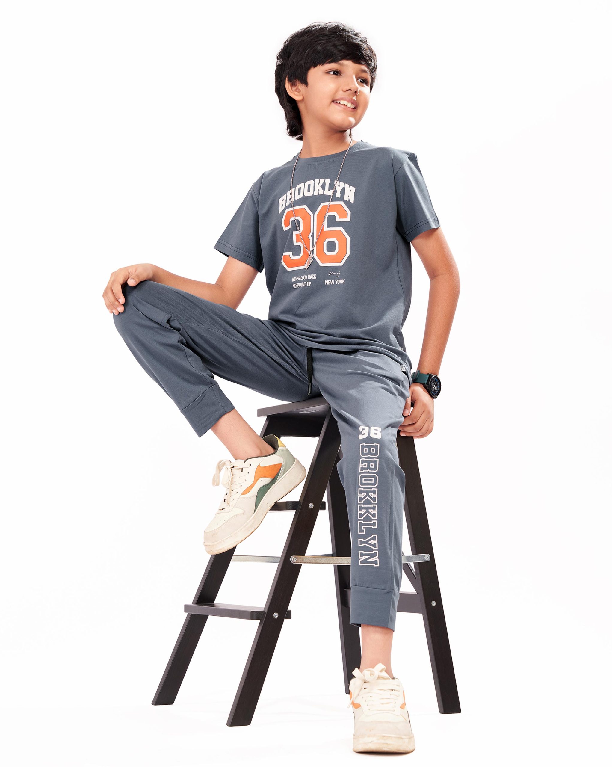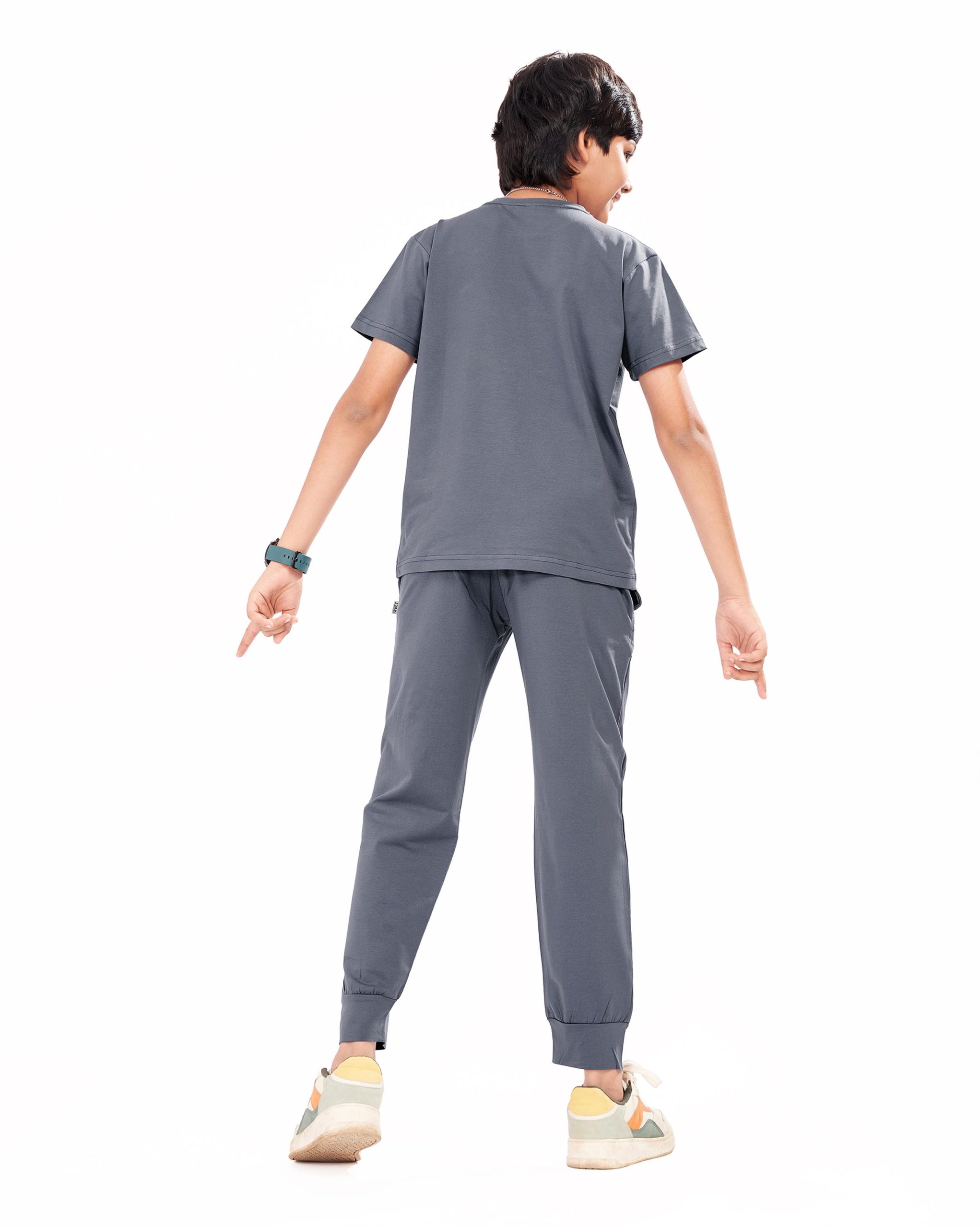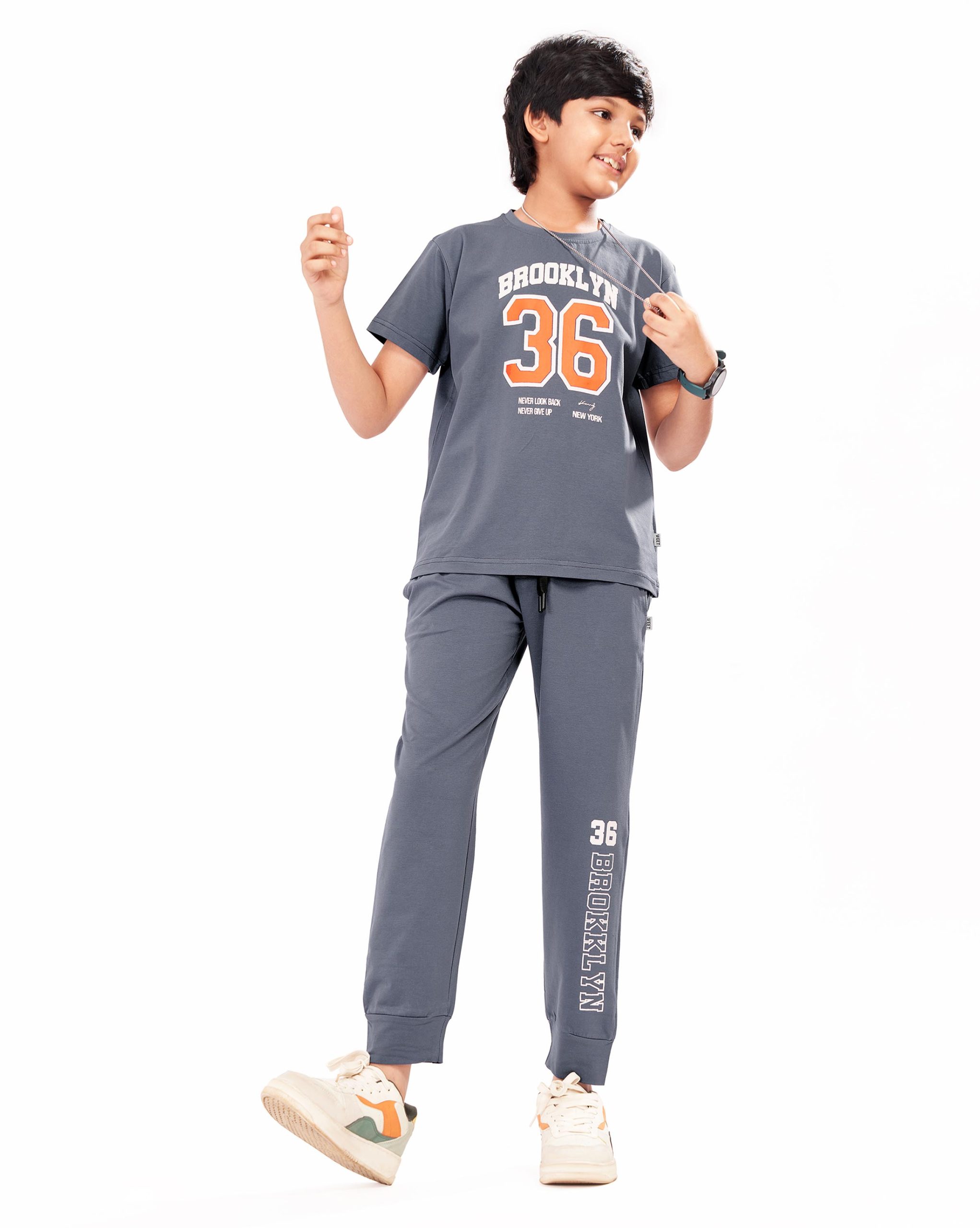 WEET Boys Cotton T-Shirt and Pyjama Set | Printed Nightwear Coord Set – Grey