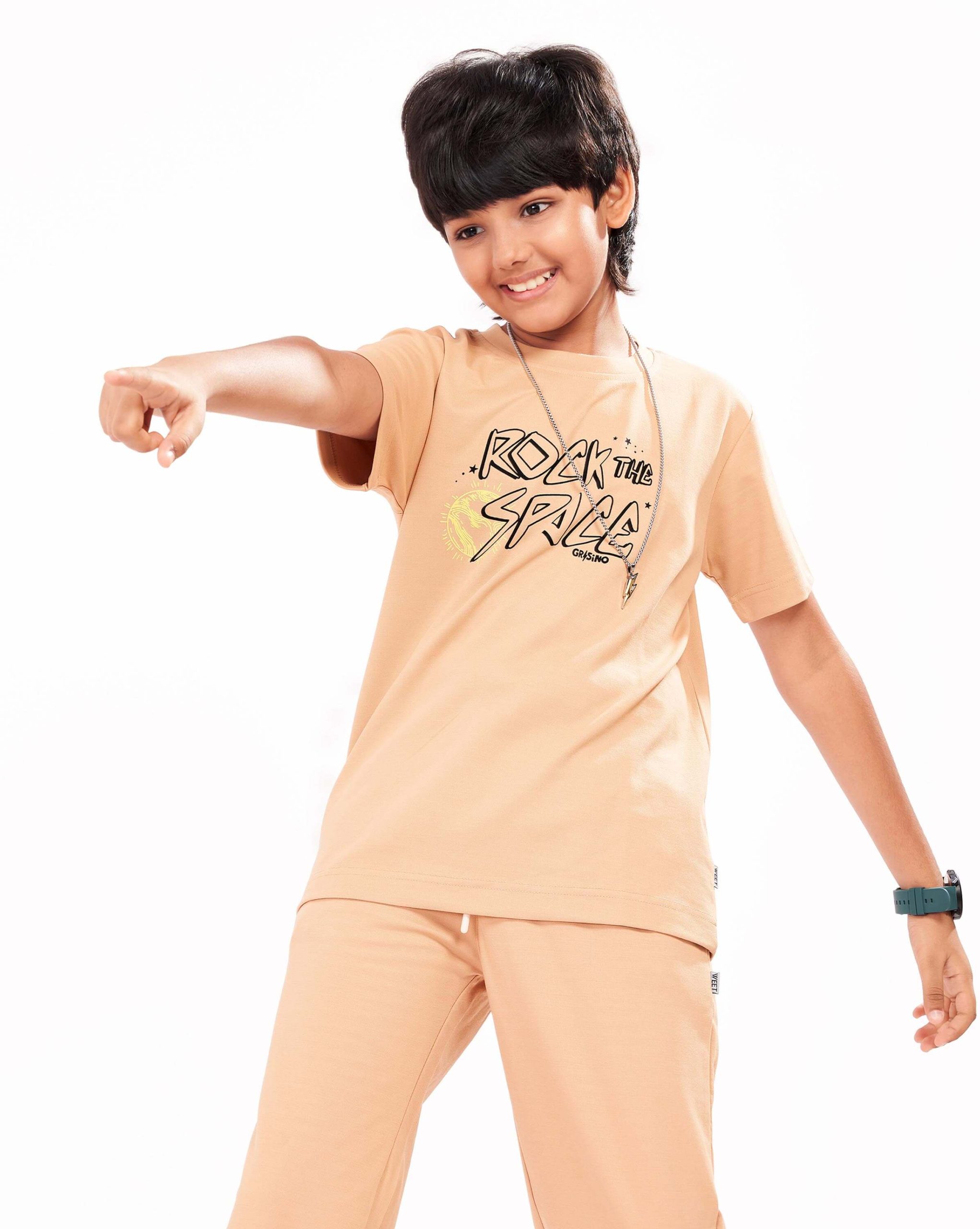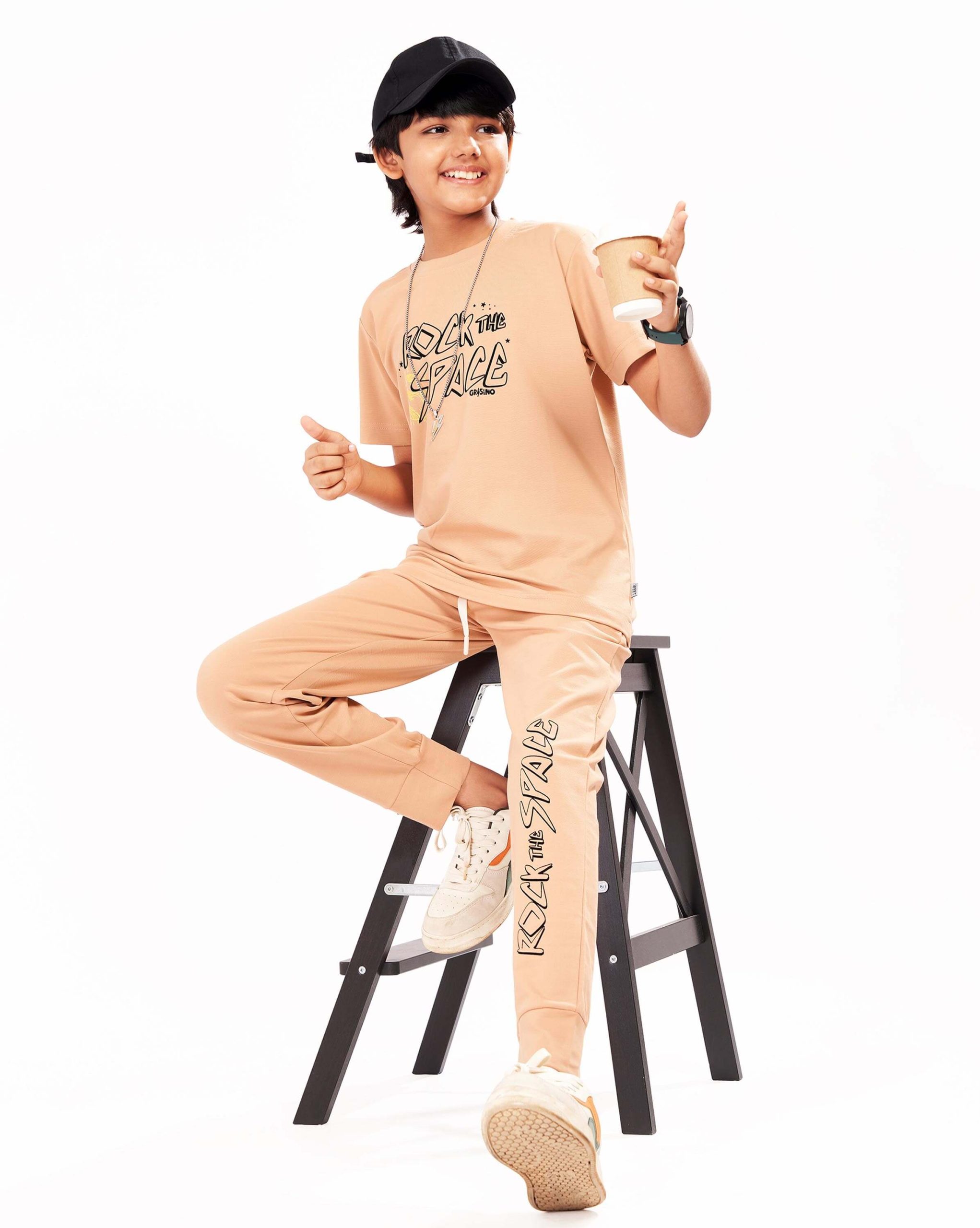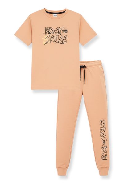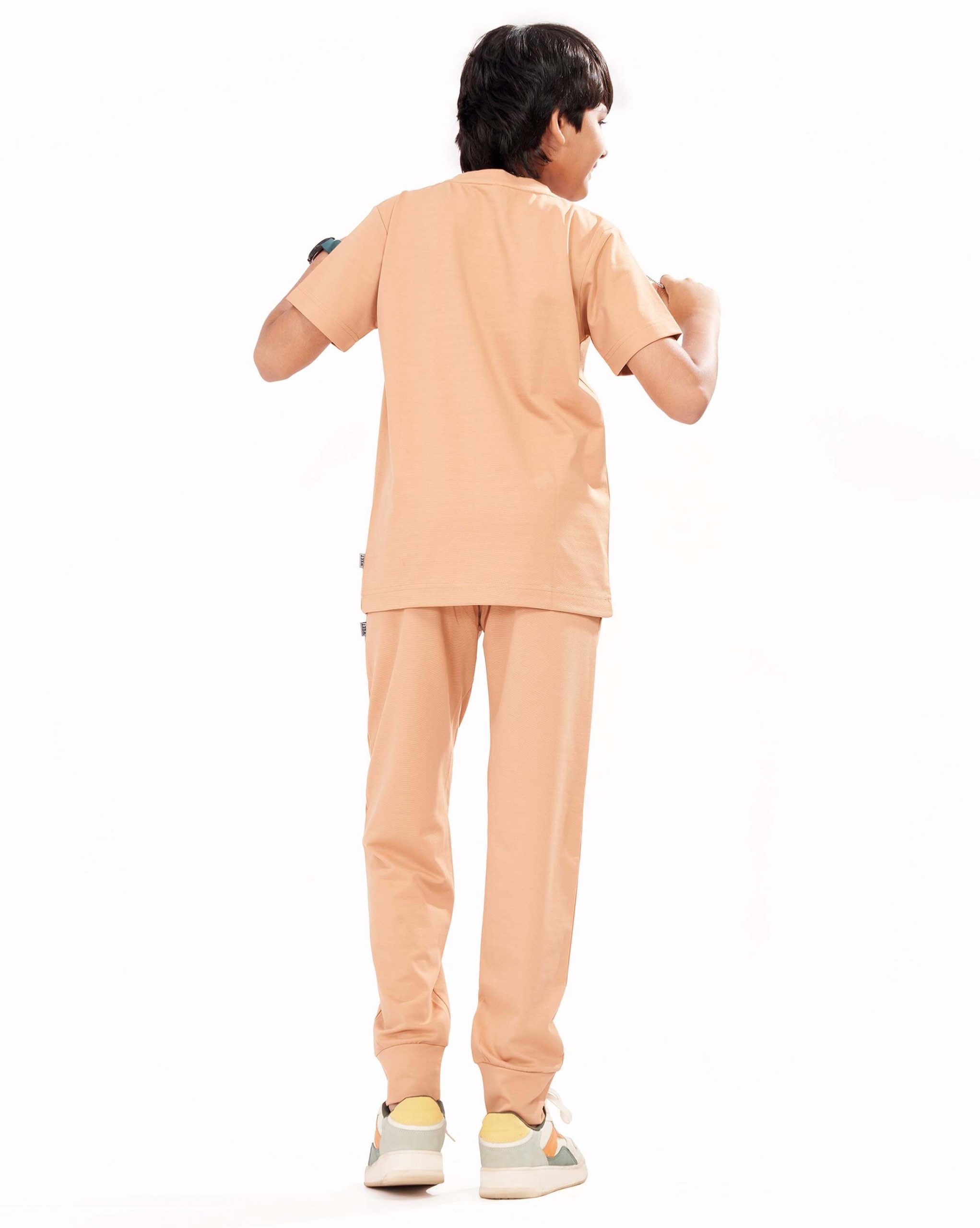 WEET Boys Cotton T-Shirt and Pyjama Set | Printed Nightwear Coord Set – Peach