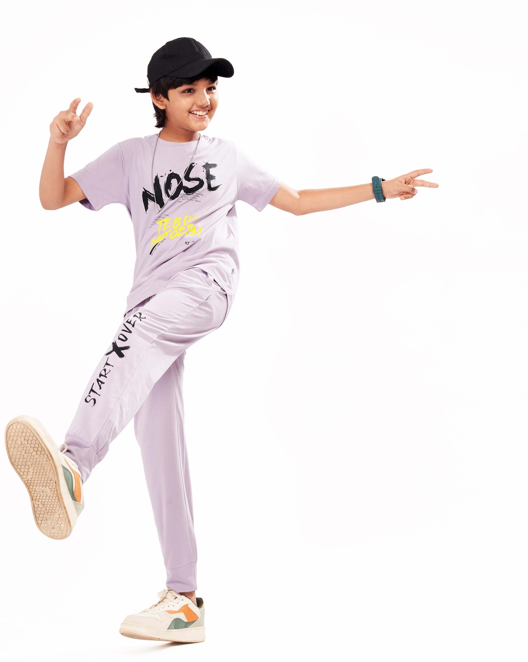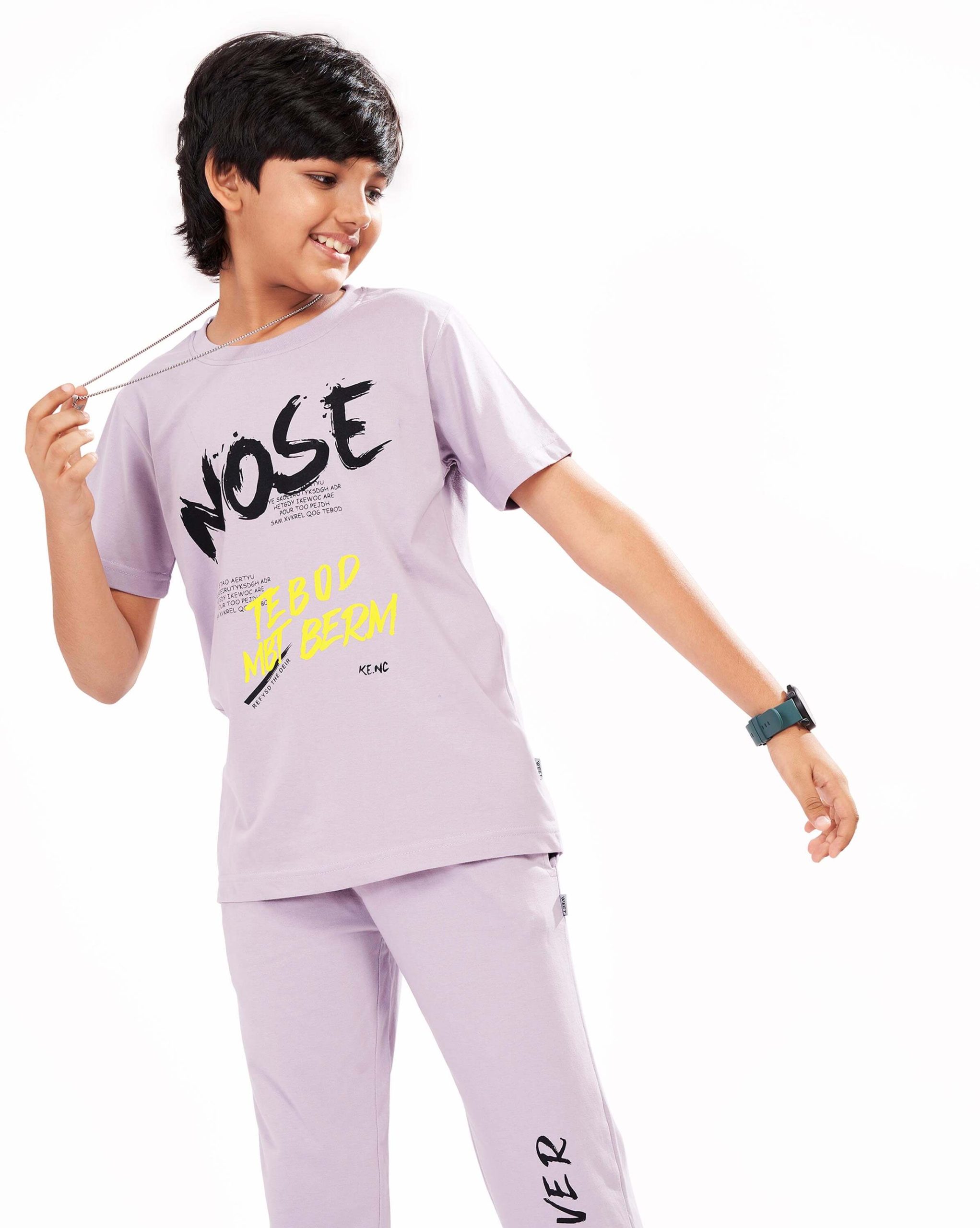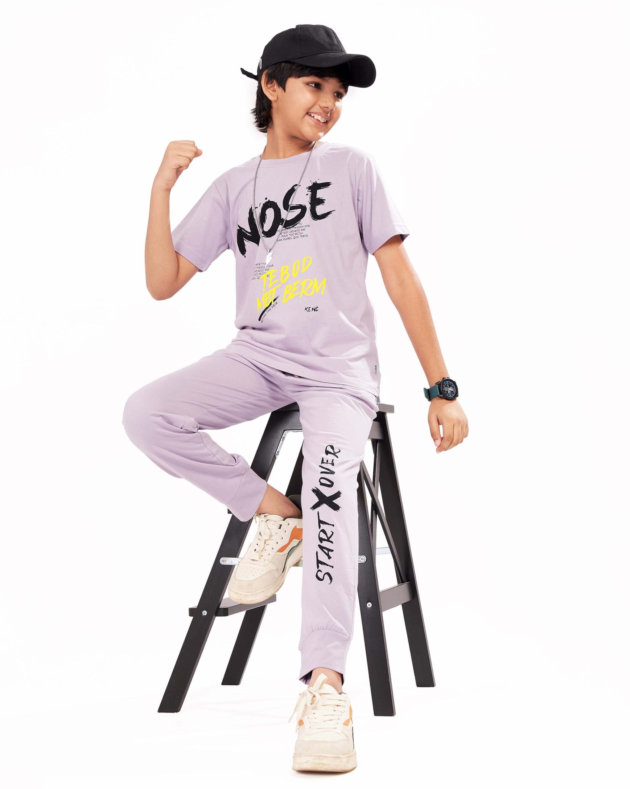 WEET Boys Cotton T-Shirt and Pyjama Set | Printed Nightwear Coord Set – Purple