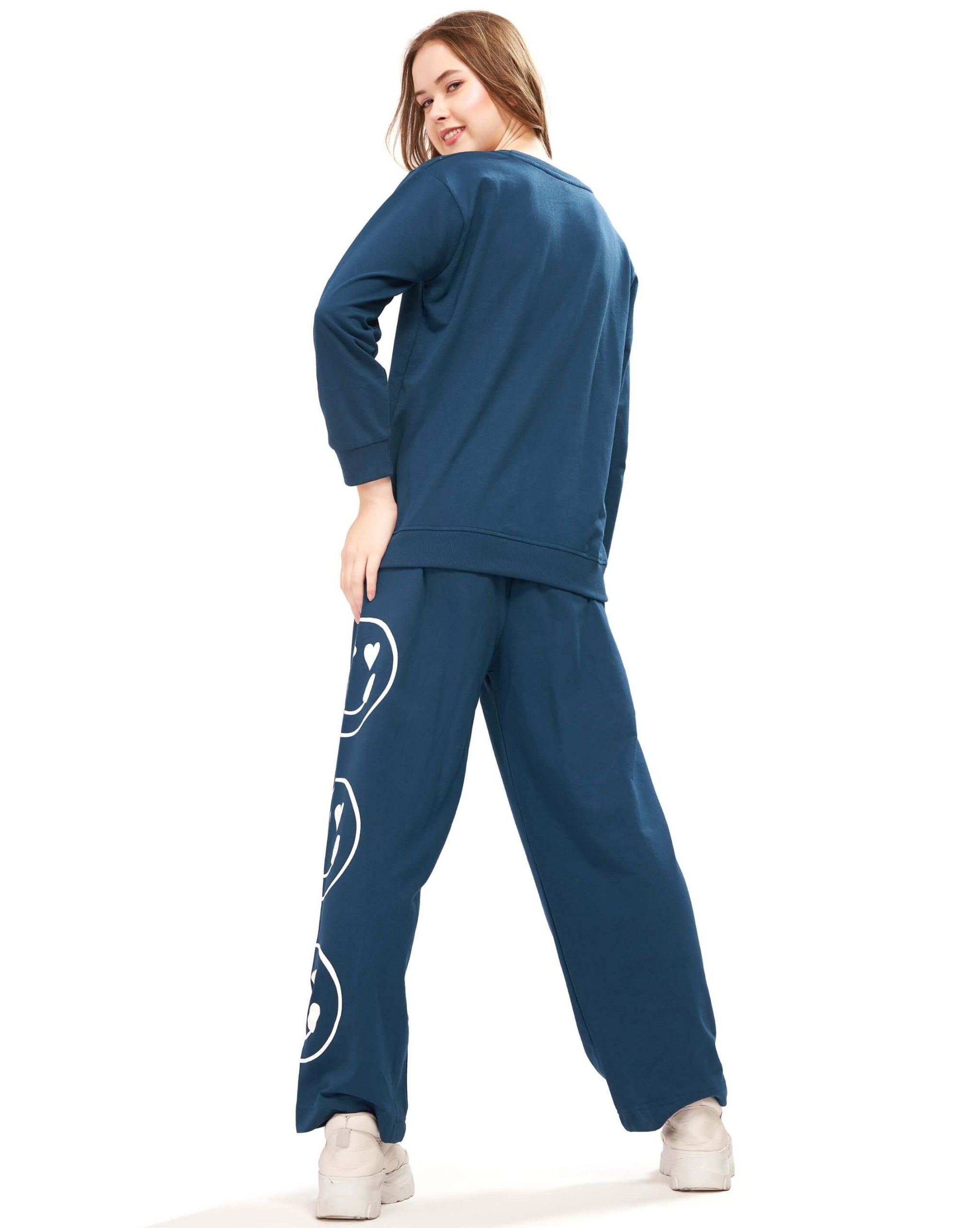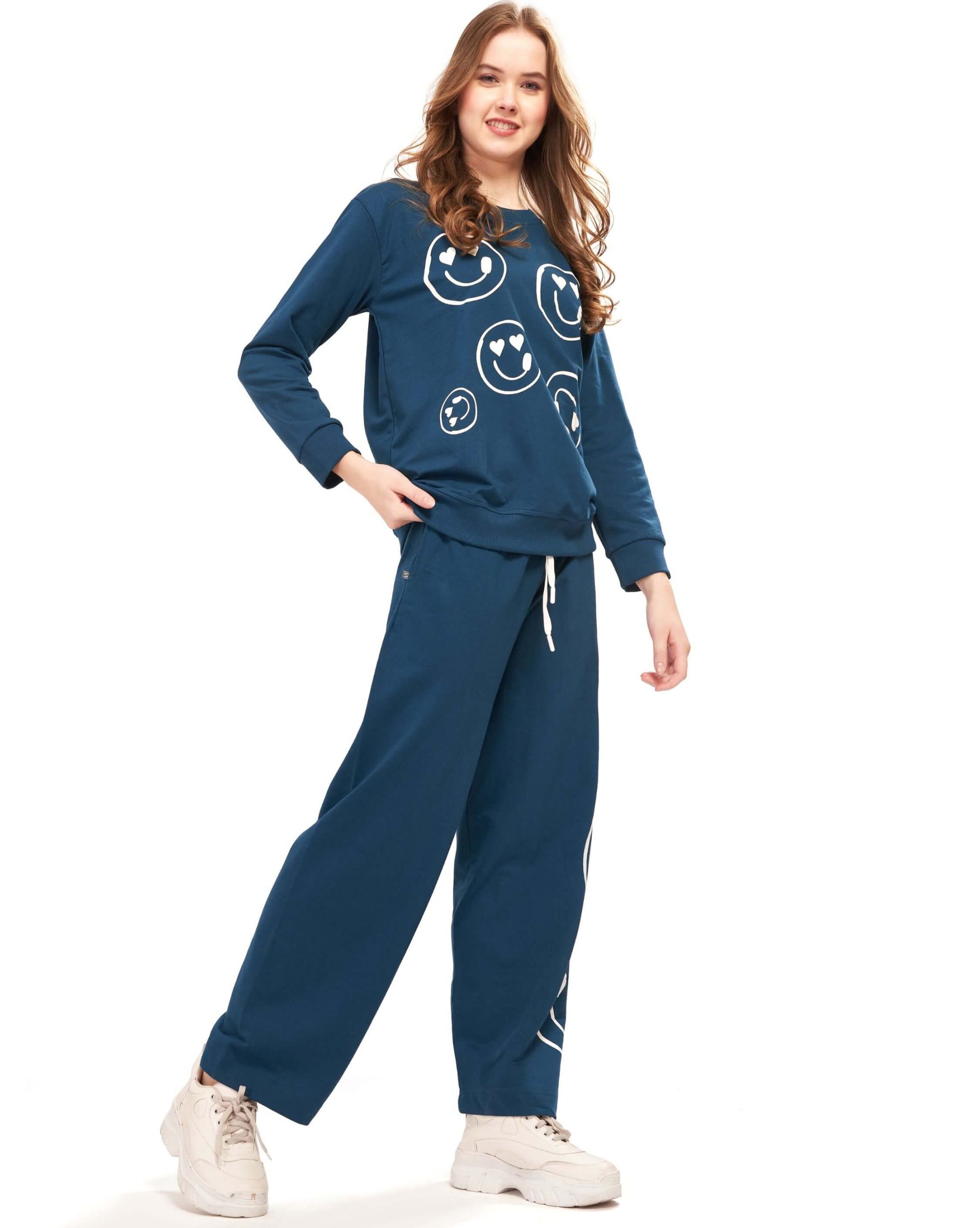 Upgrade your casual and activewear wardrobe with the WEET cotton full sleeves sweatshirt & joggers tracksuit. Crafted from soft, breathable cotton, this stylish co-ord set features a chest-printed sweatshirt with round neck and long sleeves, paired with mid-rise joggers designed with an elasticated waistband and side pockets for functionality. Perfect for jogging, workouts, gym sessions, travel, or lounging, this tracksuit keeps you comfortable without compromising on style. A versatile everyday outfit for women.