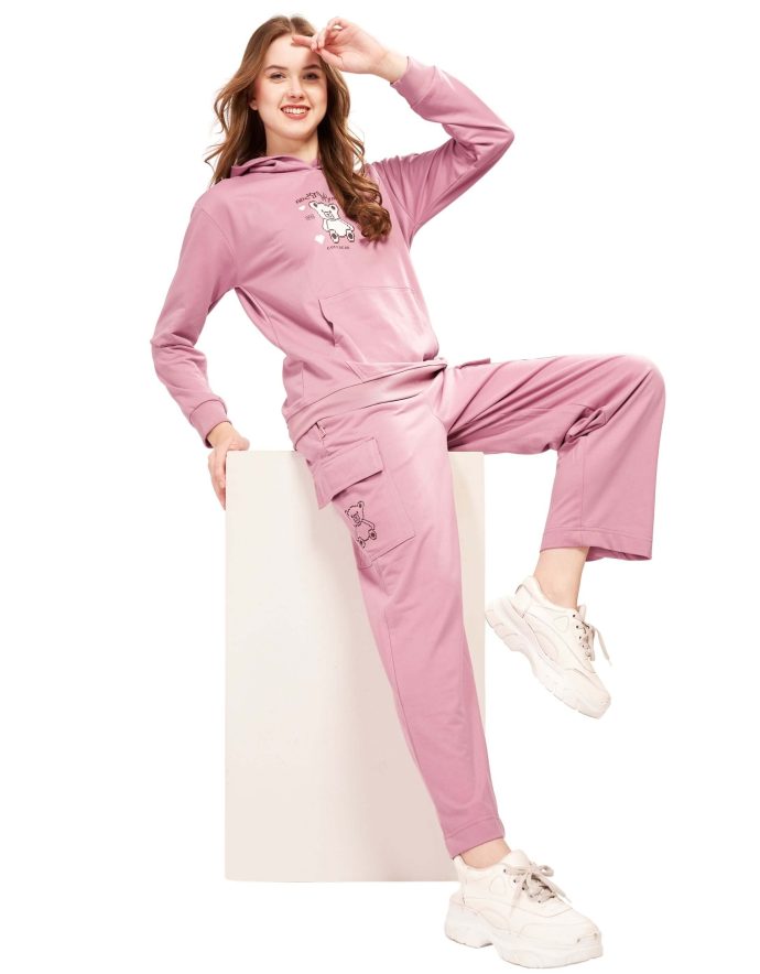 Elevate your everyday style with the WEET cotton hoodie & cargo pocket tracksuit – the perfect blend of fashion and function. Designed for women, this tracksuit features a chest-printed hooded sweatshirt with kangaroo pocket and matching cargo joggers with drawstring closure. Whether you’re hitting the gym, running errands, traveling, or lounging at home, this versatile co-ord set keeps you looking trendy while providing unmatched comfort. A must-have addition to your casual and activewear wardrobe.