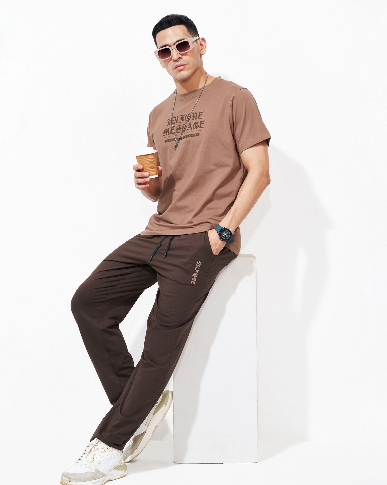 Men’s Light Coffee & White Pyjama Set