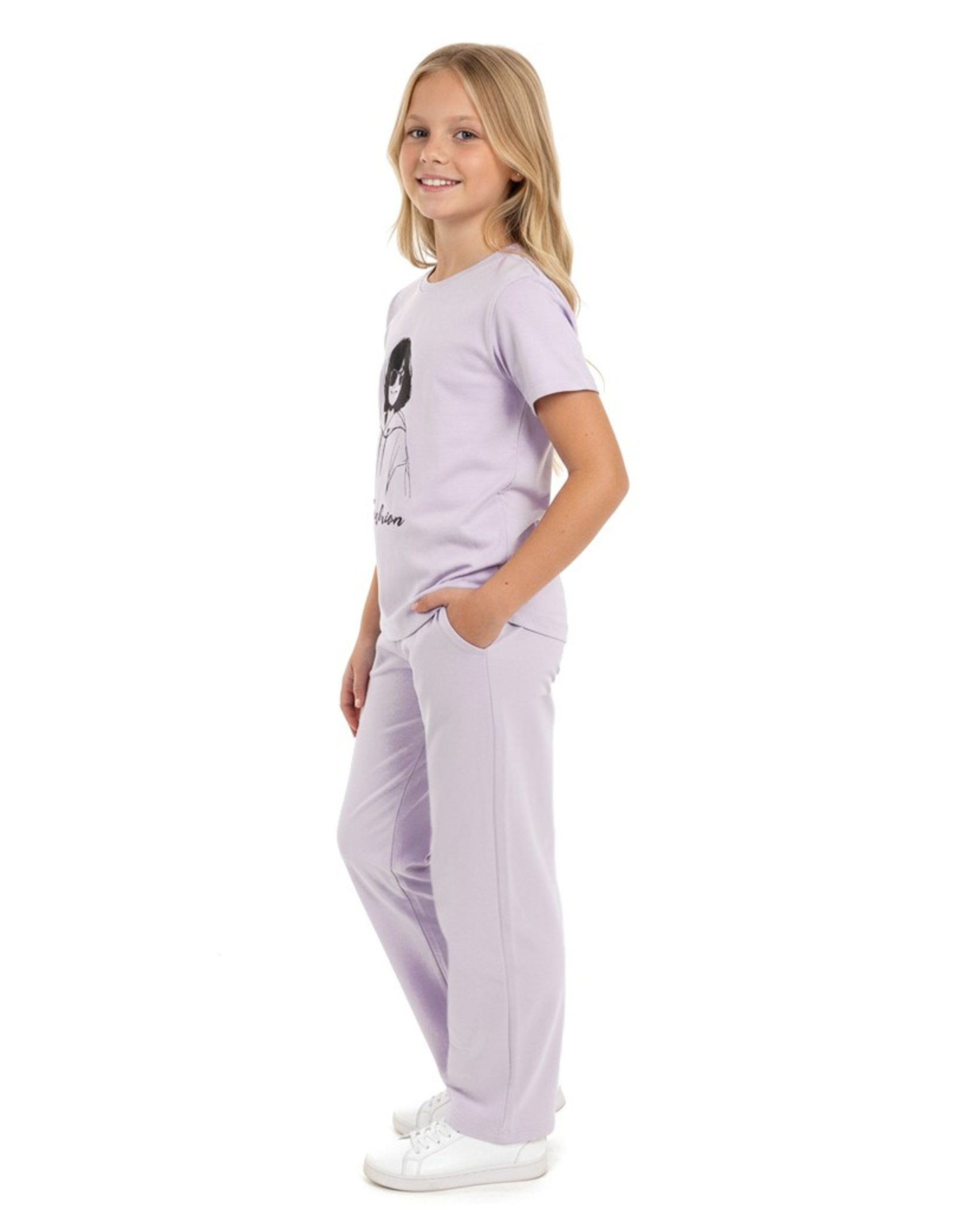 WEET Girls Printed Round Neck Printed T-Shirt and Palazo Pant | Top & Pajama Set Purple
