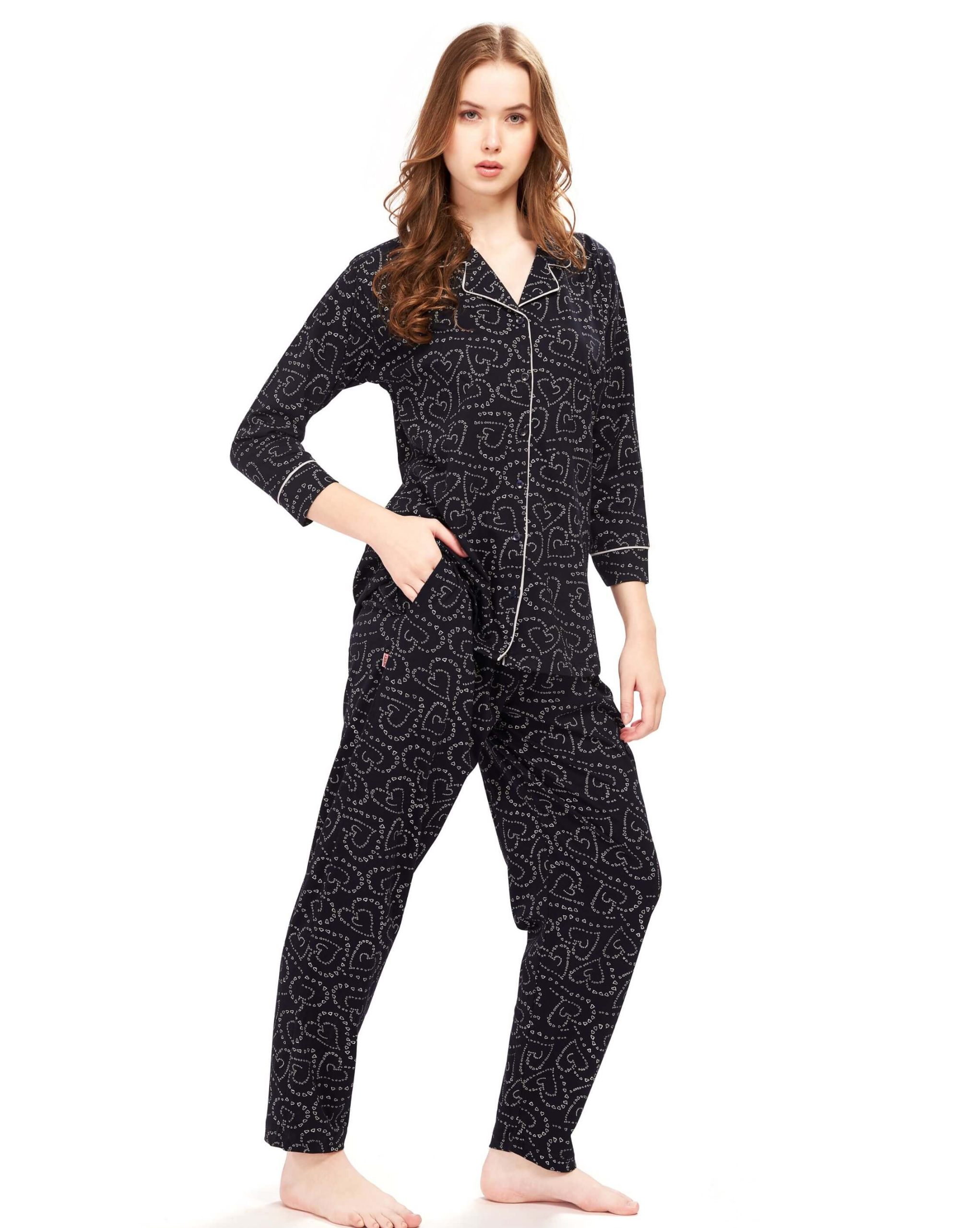 Elevate your sleepwear collection with our Women’s Cotton All Over Printed Heart Printed Nightdress Shirt and Pyjama Set. Crafted from soft, breathable fabric, this set ensures a restful night while keeping you stylish. The shirt and pyjama set provide a relaxed fit, perfect for lounging or sleeping. Whether for casual nights or unwinding after a busy day, this set offers both comfort and elegance. Treat yourself to the ultimate sleepwear experience!