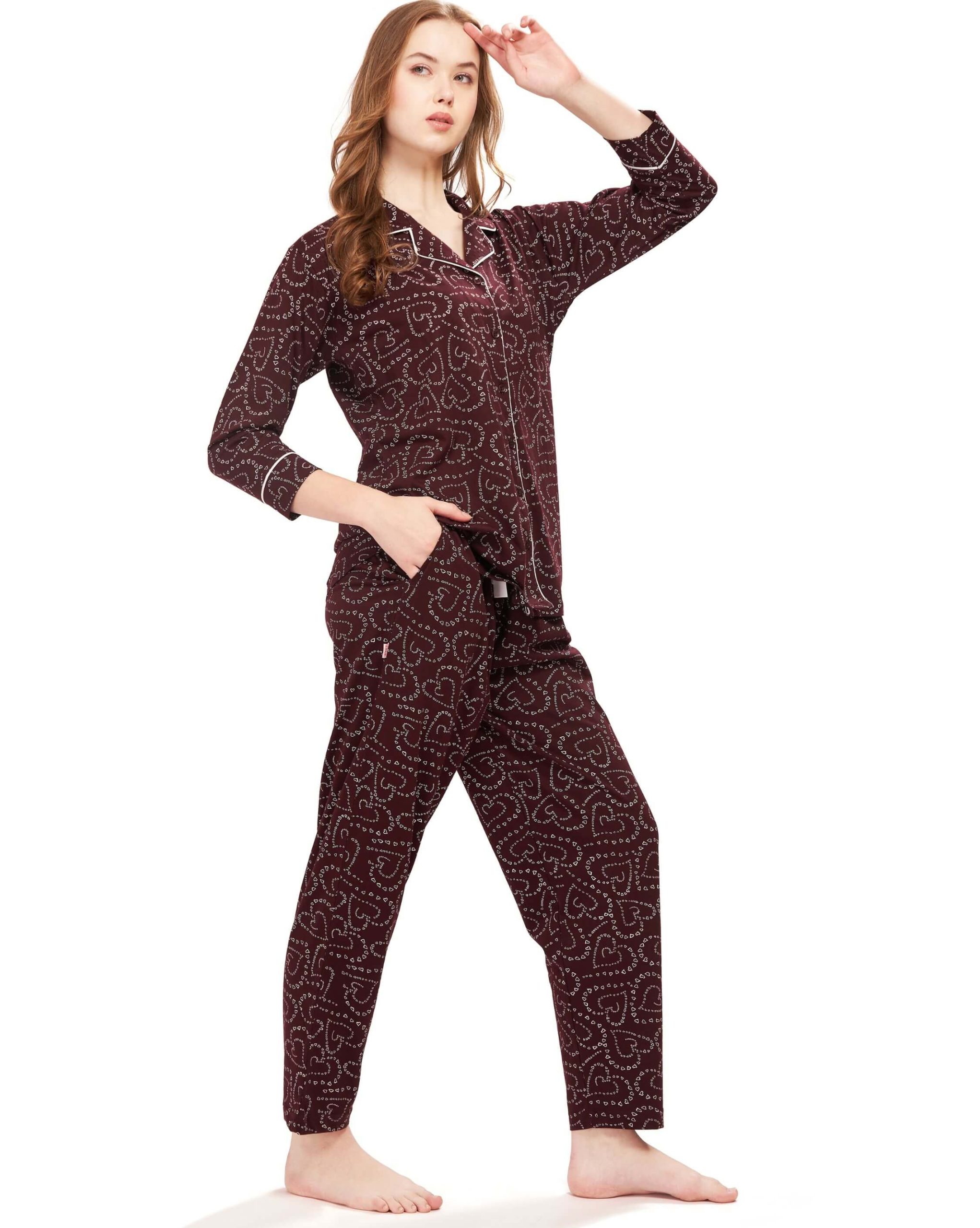 WEET Women’s Cotton All Over Printed Shirt & Payjama Nightsuit Set 120