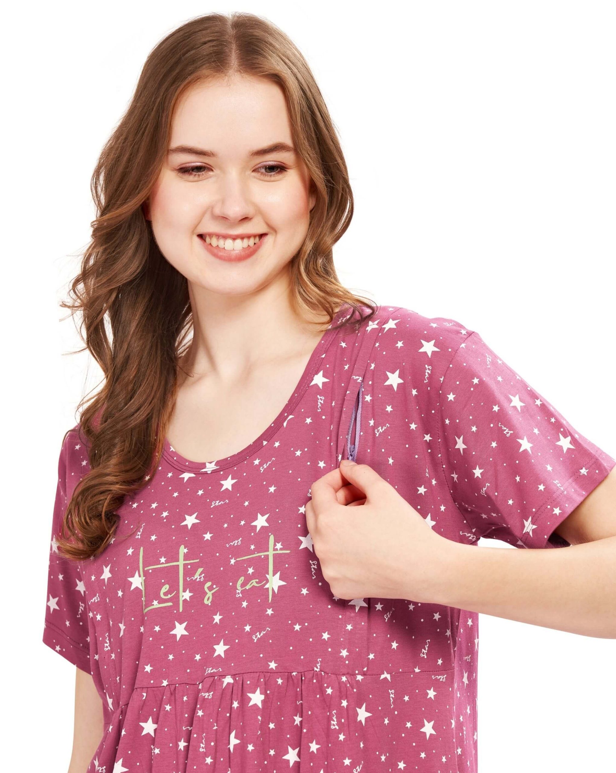 • WEET Women’s Cotton Heart Knee Length Maternity Nighty ,Feeding Nighty 9409