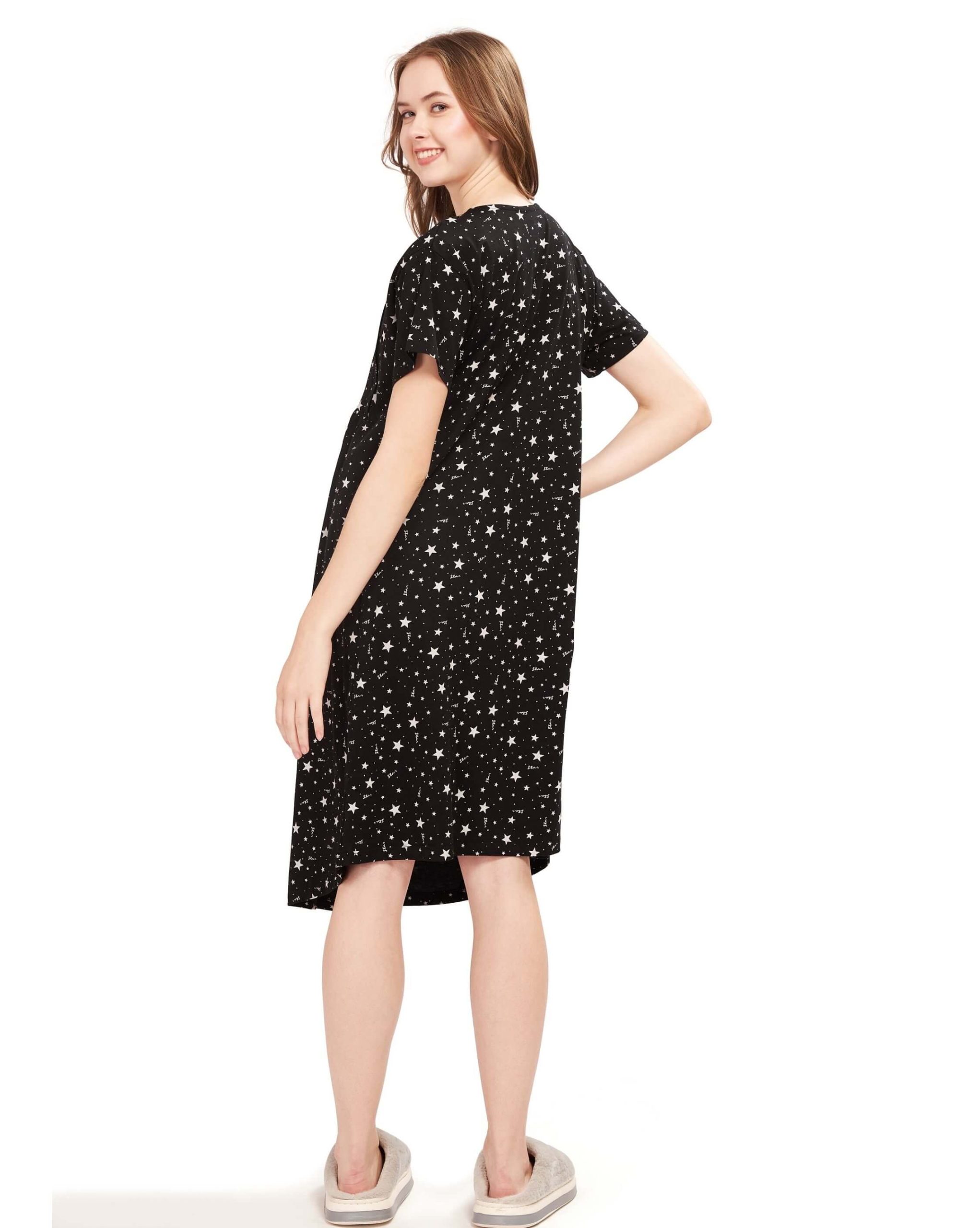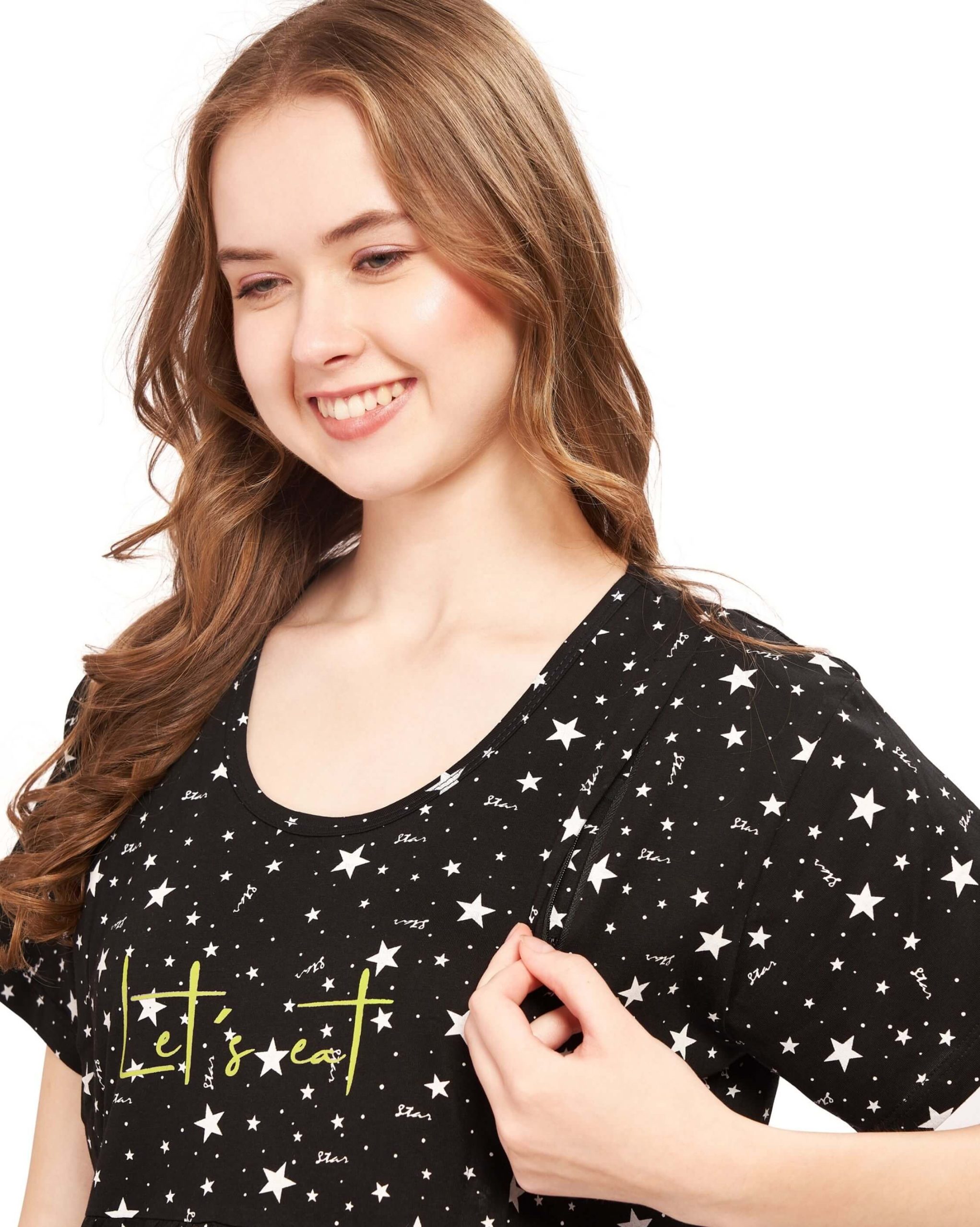 • WEET Women’s Cotton Heart Knee Length Maternity Nighty ,Feeding Nighty Black 9409