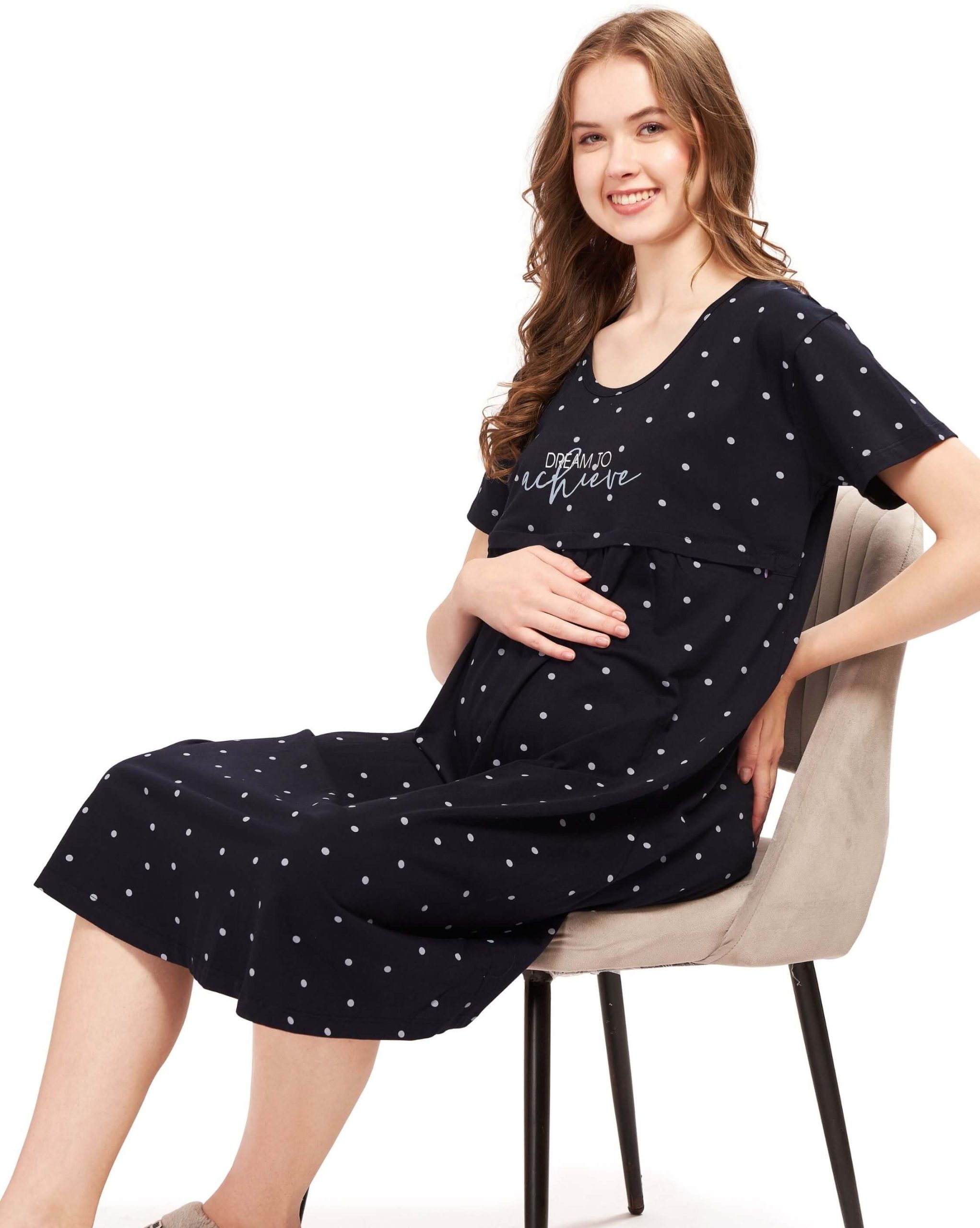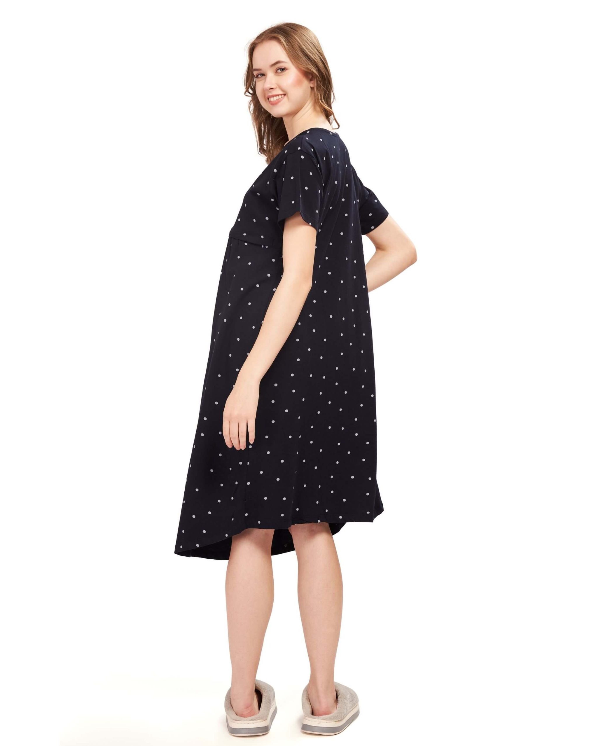 • WEET Women’s Cotton Heart Knee Length Maternity Nighty ,Feeding Nighty Navy Blue 9407