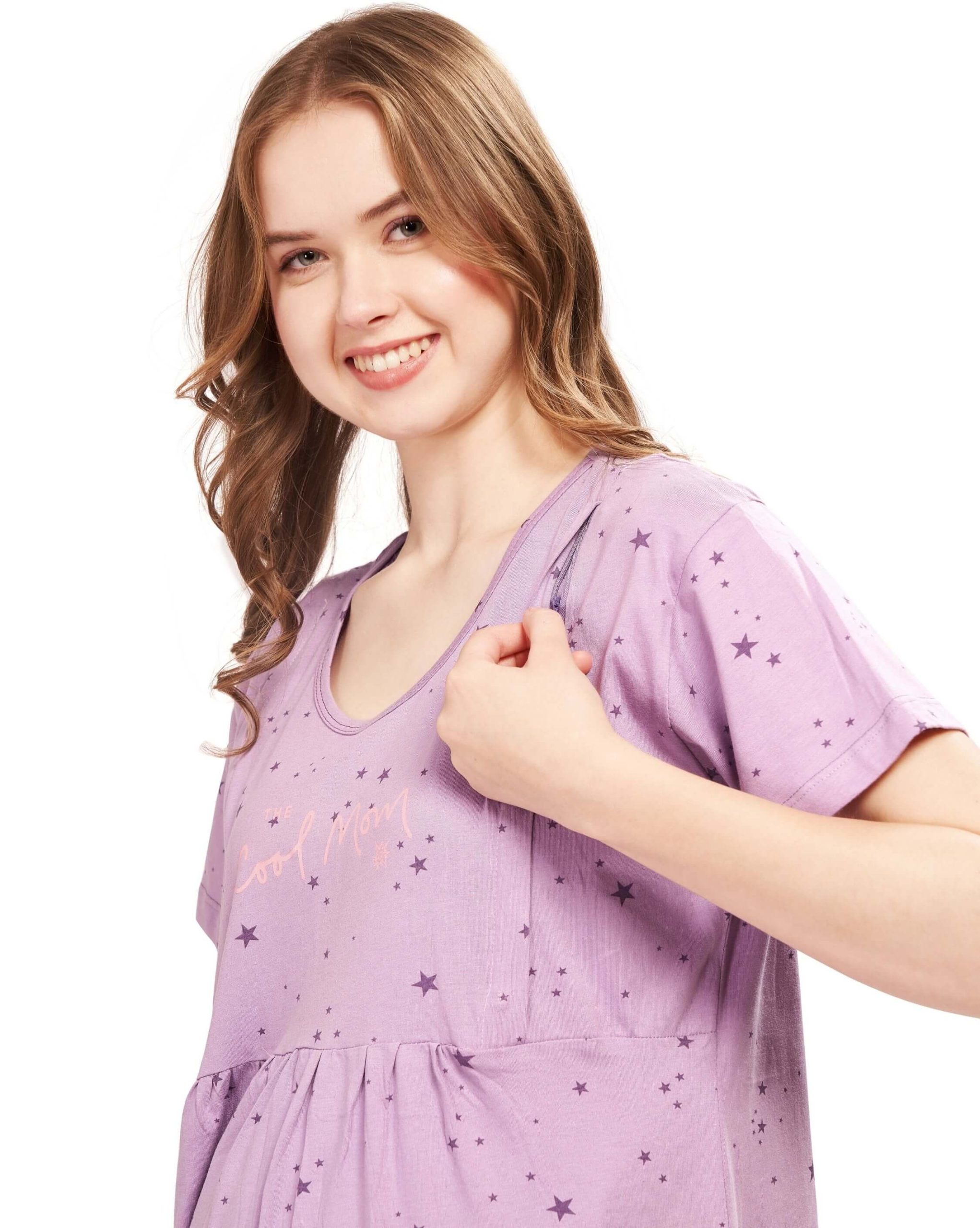 Experience all-day comfort with this cotton maternity and feeding nighty designed for new moms and moms-to-be. Made with soft breathable cotton, it features a smart 2-way discreet zipper that allows easy and comfortable breastfeeding anytime. The relaxed fit, half sleeves, and round neck ensure maximum comfort during pregnancy, postpartum and daily home wear. This versatile feeding nighty is perfect for sleepwear, loungewear, and casual home wear, making it a thoughtful and practical gift for baby showers, expecting mothers, and breastfeeding moms.