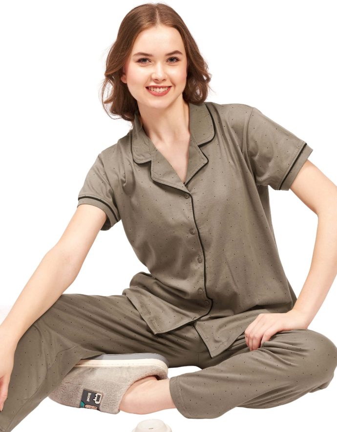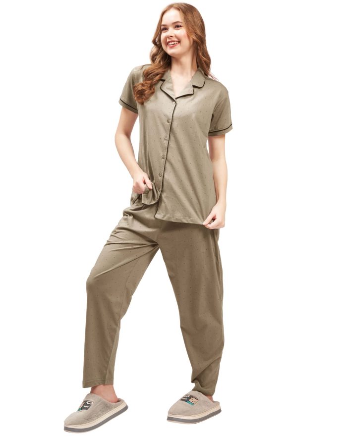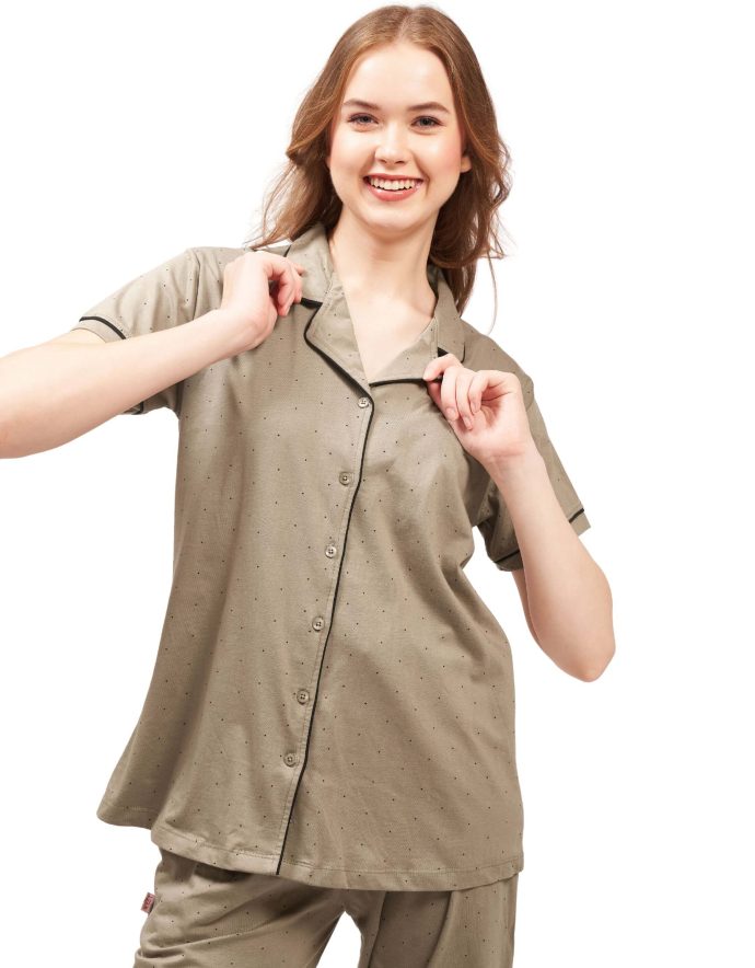 Style: Two-piece printed nightwear set – shirt + pyjama (ladies pyjama set)