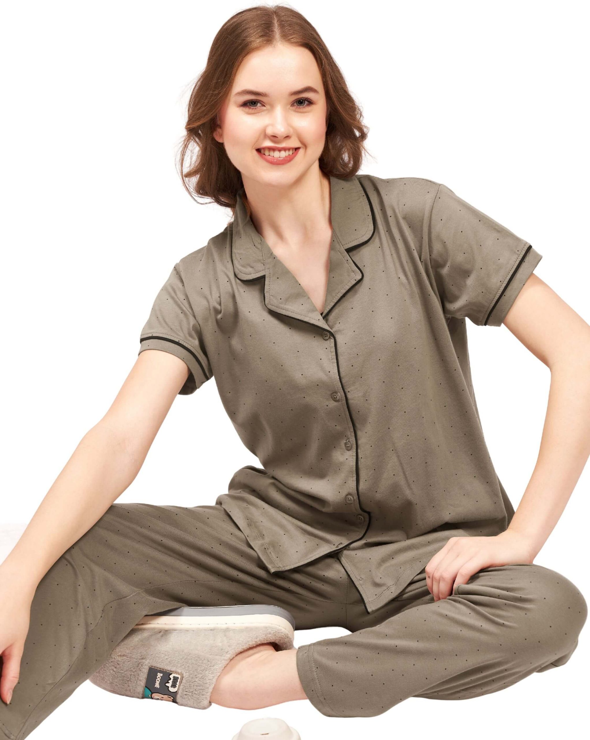 • WEET Women’s Cotton Shirt & Pyjama Set | Printed Nightwear Nightsuit 121A