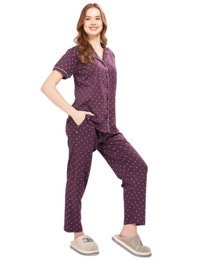 WEET Women’s Cotton Shirt & Pyjama Set | Printed Nightwear Nightsuit 122A