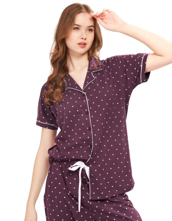 Style: Two-piece printed nightwear set – shirt + pyjama (ladies pyjama set)