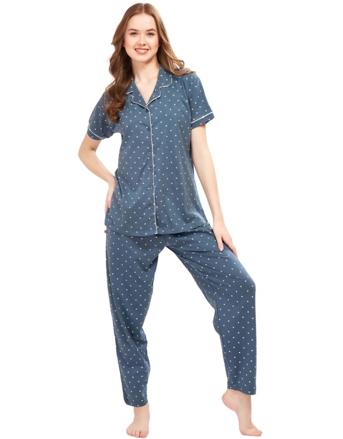 WEET Women’s Cotton Shirt & Pyjama Set | Printed Nightwear Nightsuit 122C