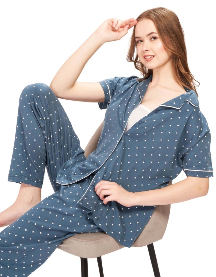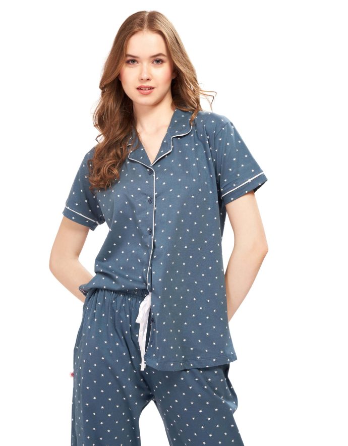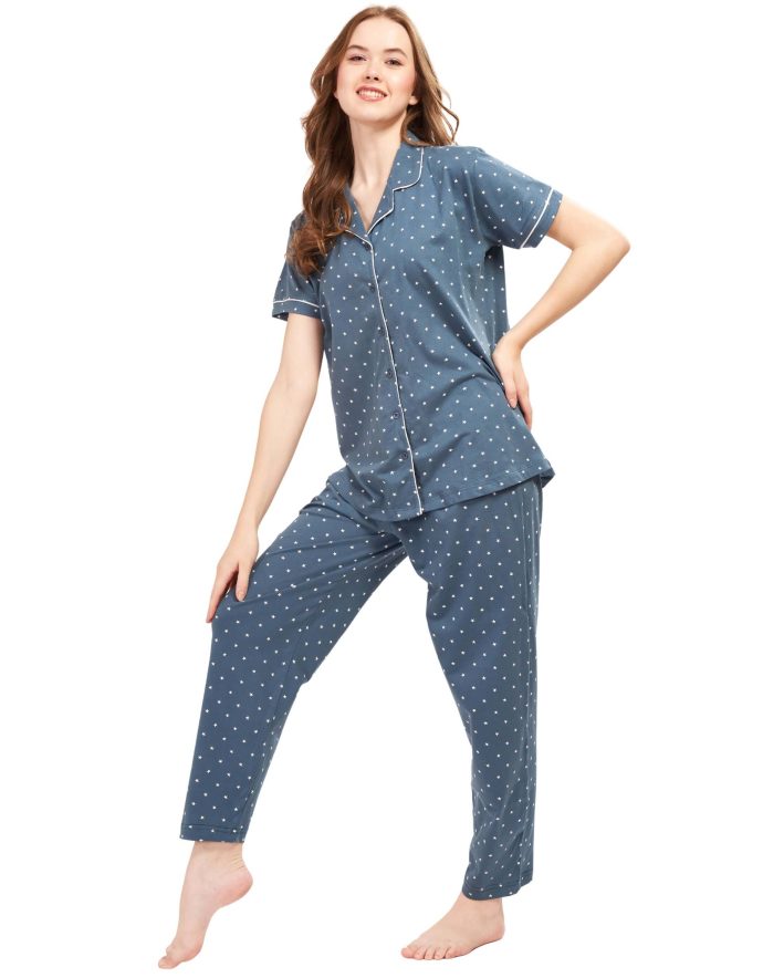 Style: Two-piece printed nightwear set – shirt + pyjama (ladies pyjama set)