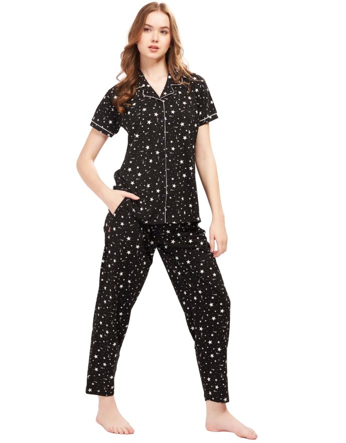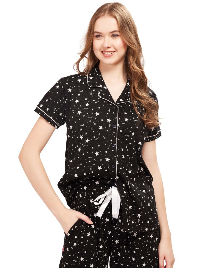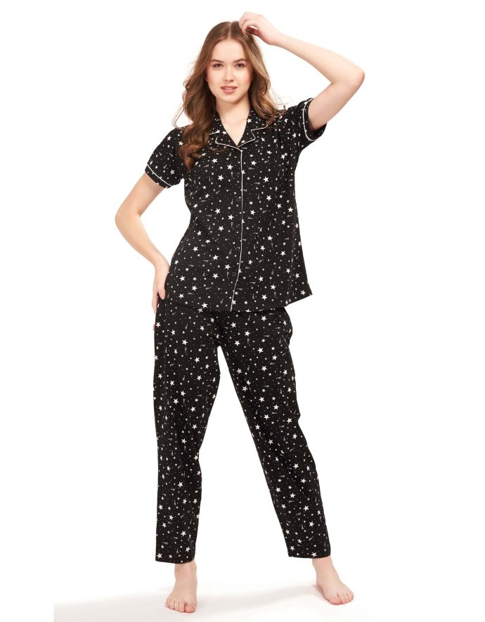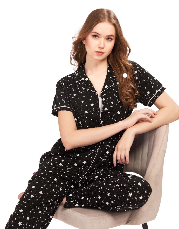 Style: Two-piece printed nightwear set – shirt + pyjama (ladies pyjama set)