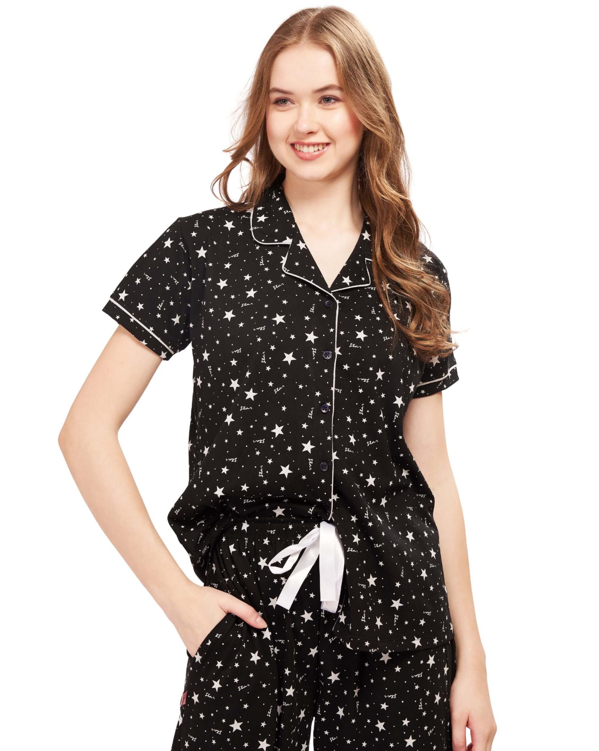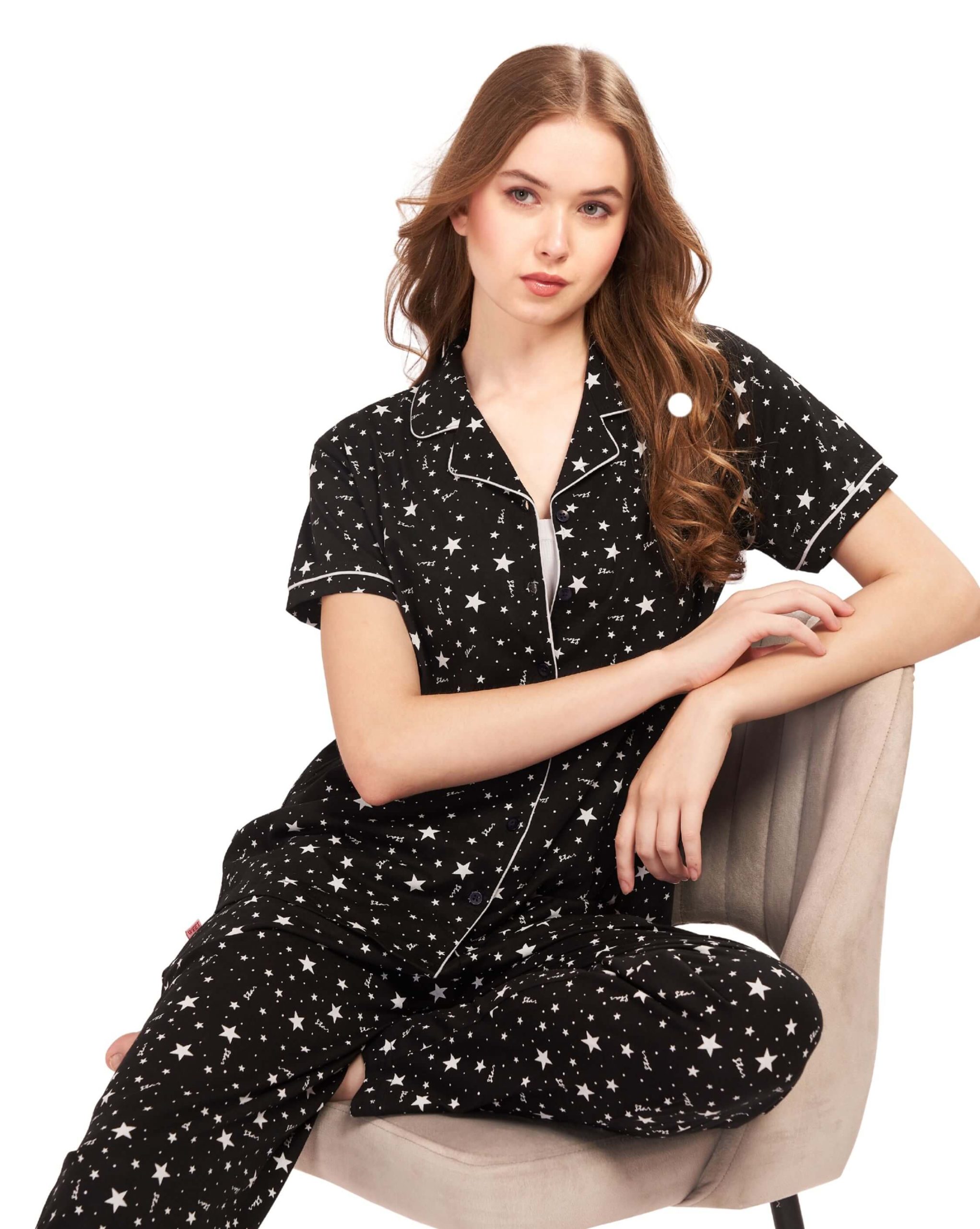 WEET Women’s Cotton Shirt & Pyjama Set | Printed Nightwear Nightsuit 123A