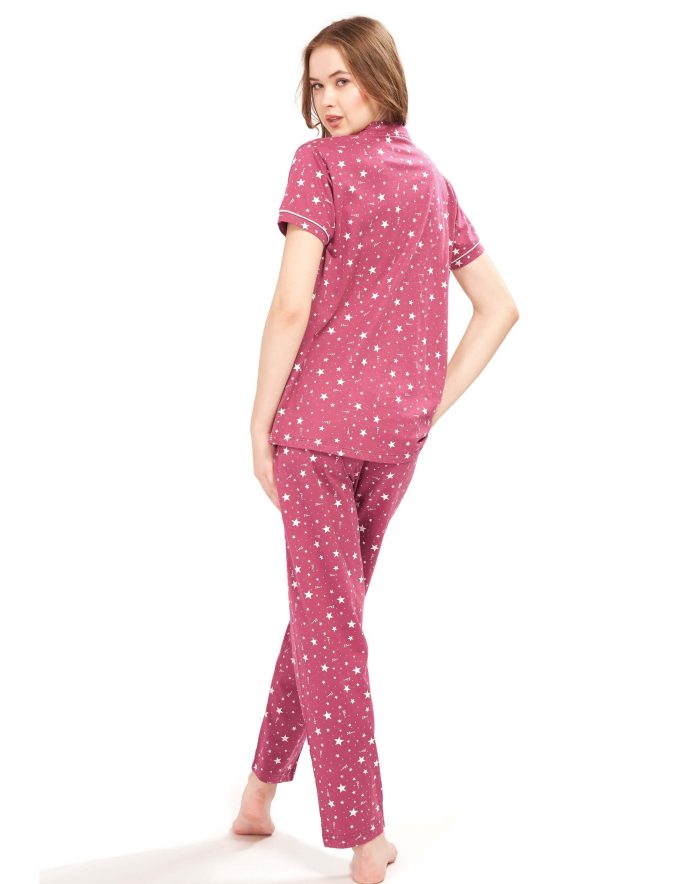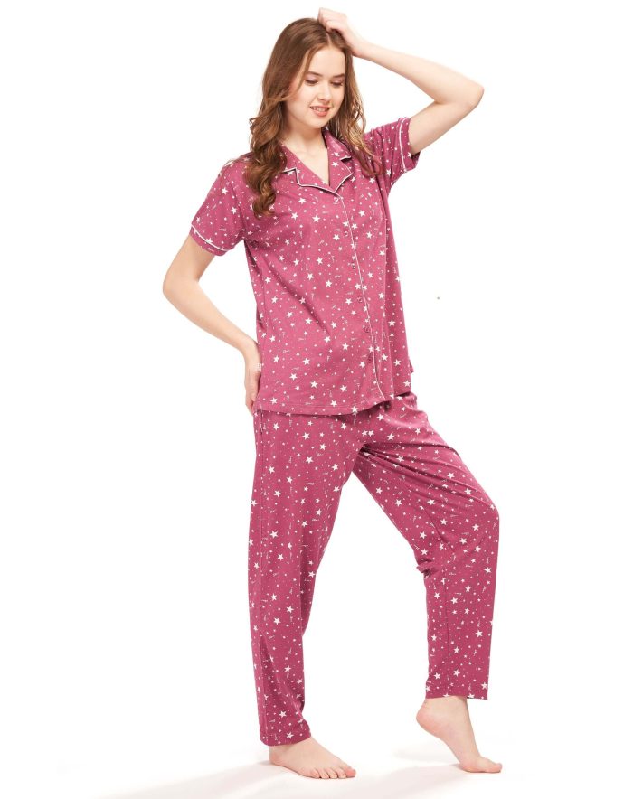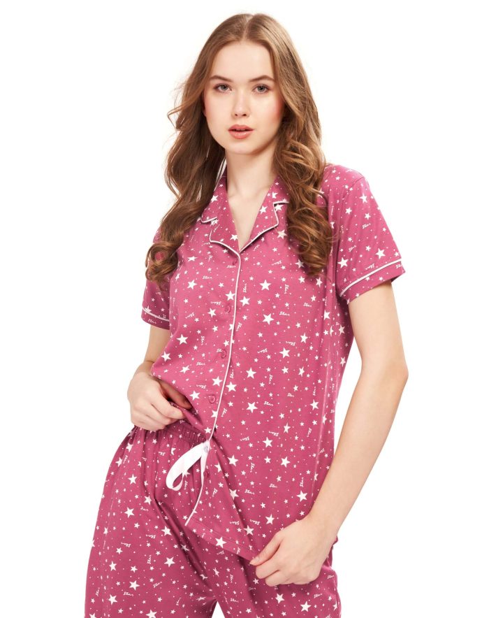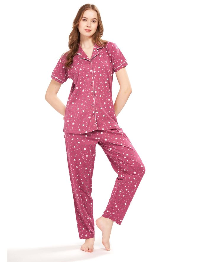 Style: Two-piece printed nightwear set – shirt + pyjama (ladies pyjama set)