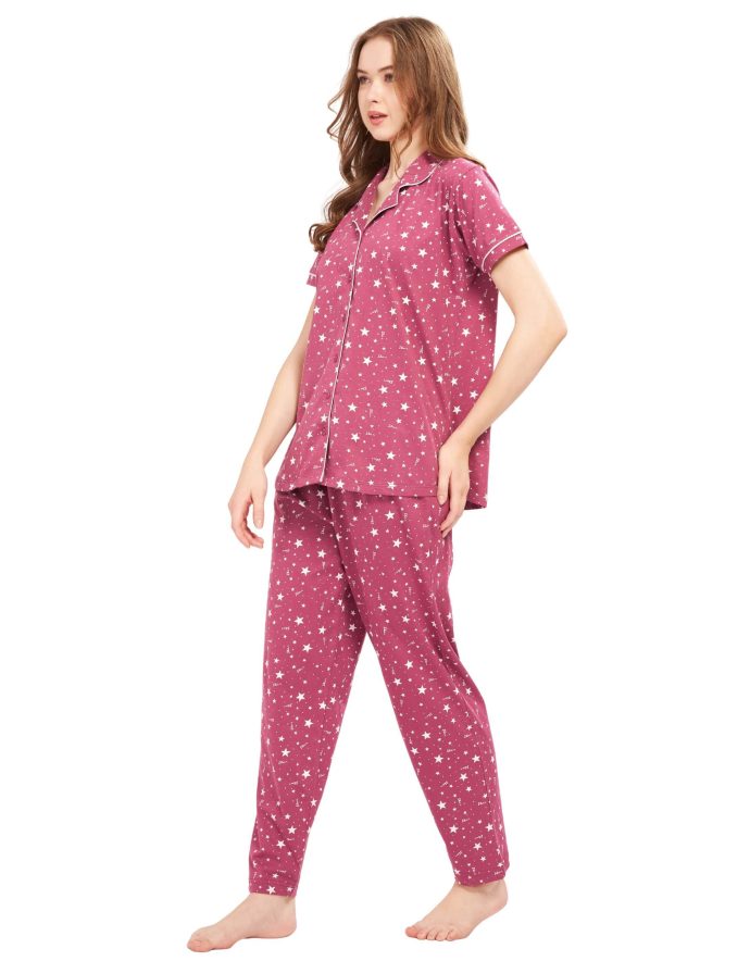 • WEET Women’s Cotton Shirt & Pyjama Set | Printed Nightwear Nightsuit 123B