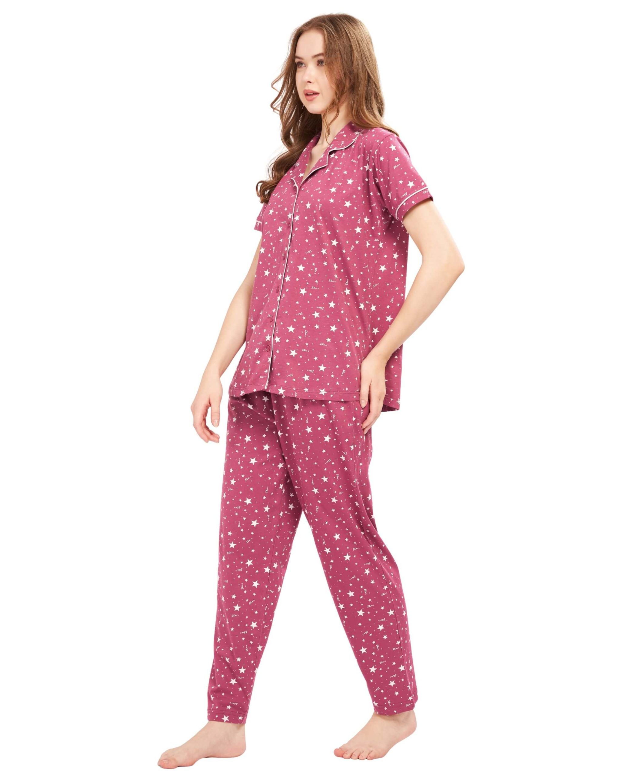 WEET Women’s Cotton Shirt & Pyjama Set | Printed Nightwear Nightsuit 123B