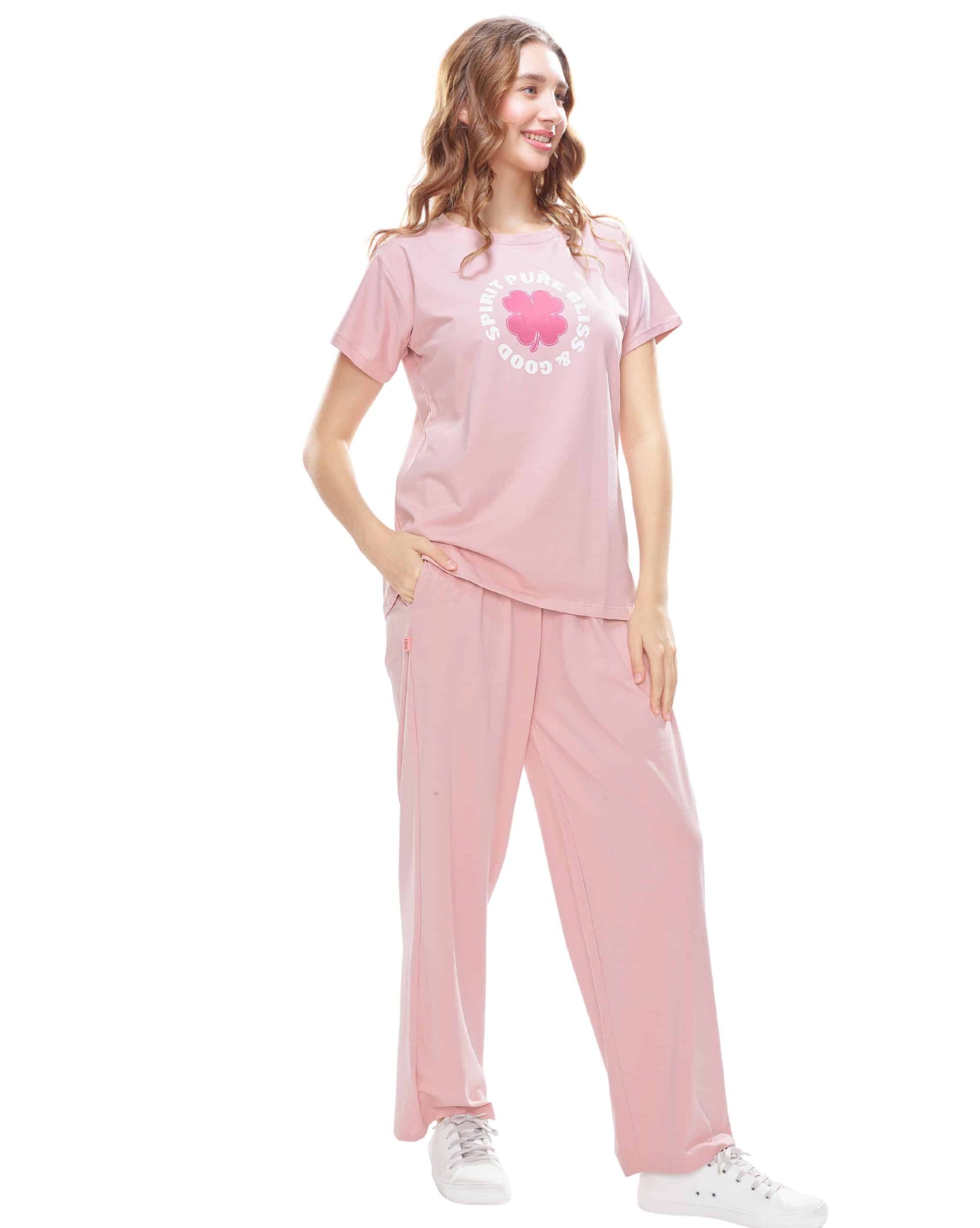 Celebrate positivity with the Women’s Good Spirit & Pure Bliss Co-Ord Set, featuring cheerful prints in light pink and light blue. This stylish two-piece set includes a comfortable round neck top and relaxed-fit shorts, making it ideal for warm days or lounging. Crafted from a lightweight cotton blend, it ensures all-day comfort and effortless care.