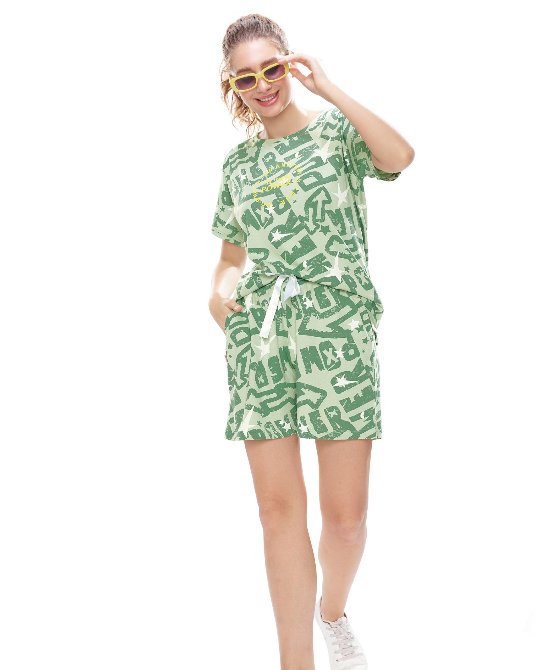 Add a touch of style to your loungewear collection with the Women’s Light Green Printed Short Set. This women’s shorts set is crafted from soft, breathable fabric, making it the perfect choice for casual days or cozy nights. With a unique print and comfortable fit, it ensures you look and feel great.
