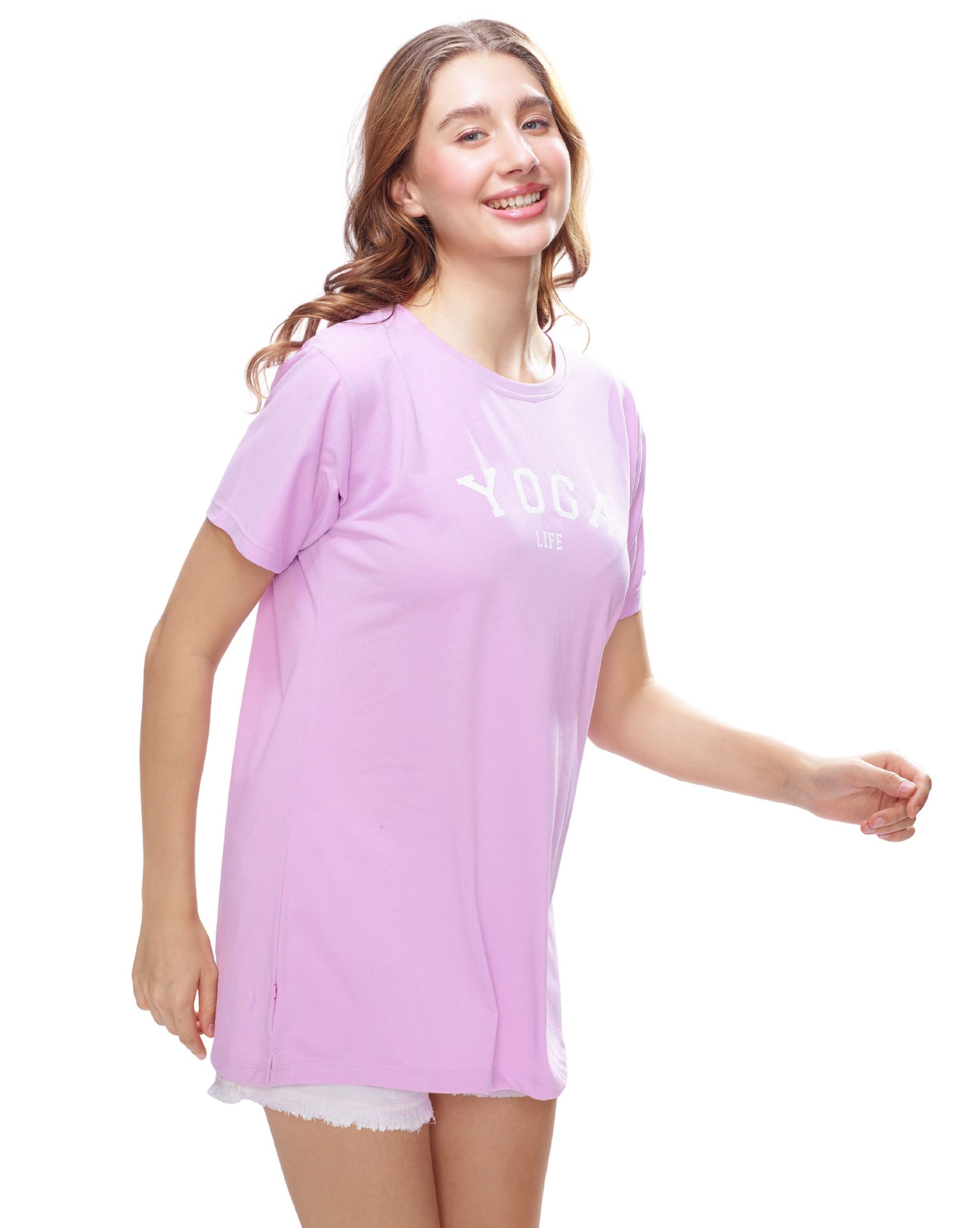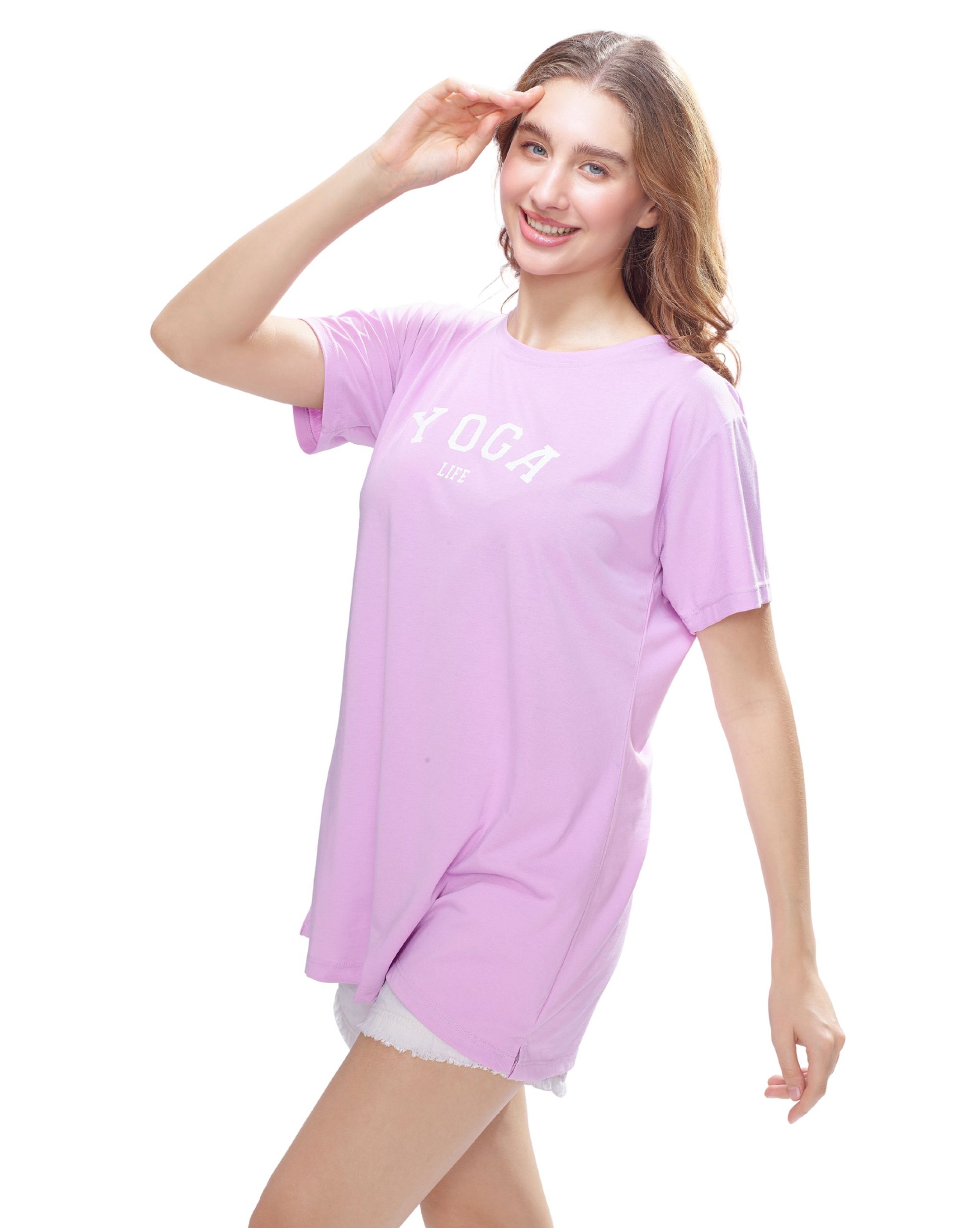 Upgrade your women’s nightwear collection with this light pink long-length T-shirt. Made for all-day comfort, its soft fabric makes it ideal as women’s sleepwear or a relaxed women’s nightsuit option. Whether for lounging or stepping out casually, this T-shirt is a must-have for effortless style.