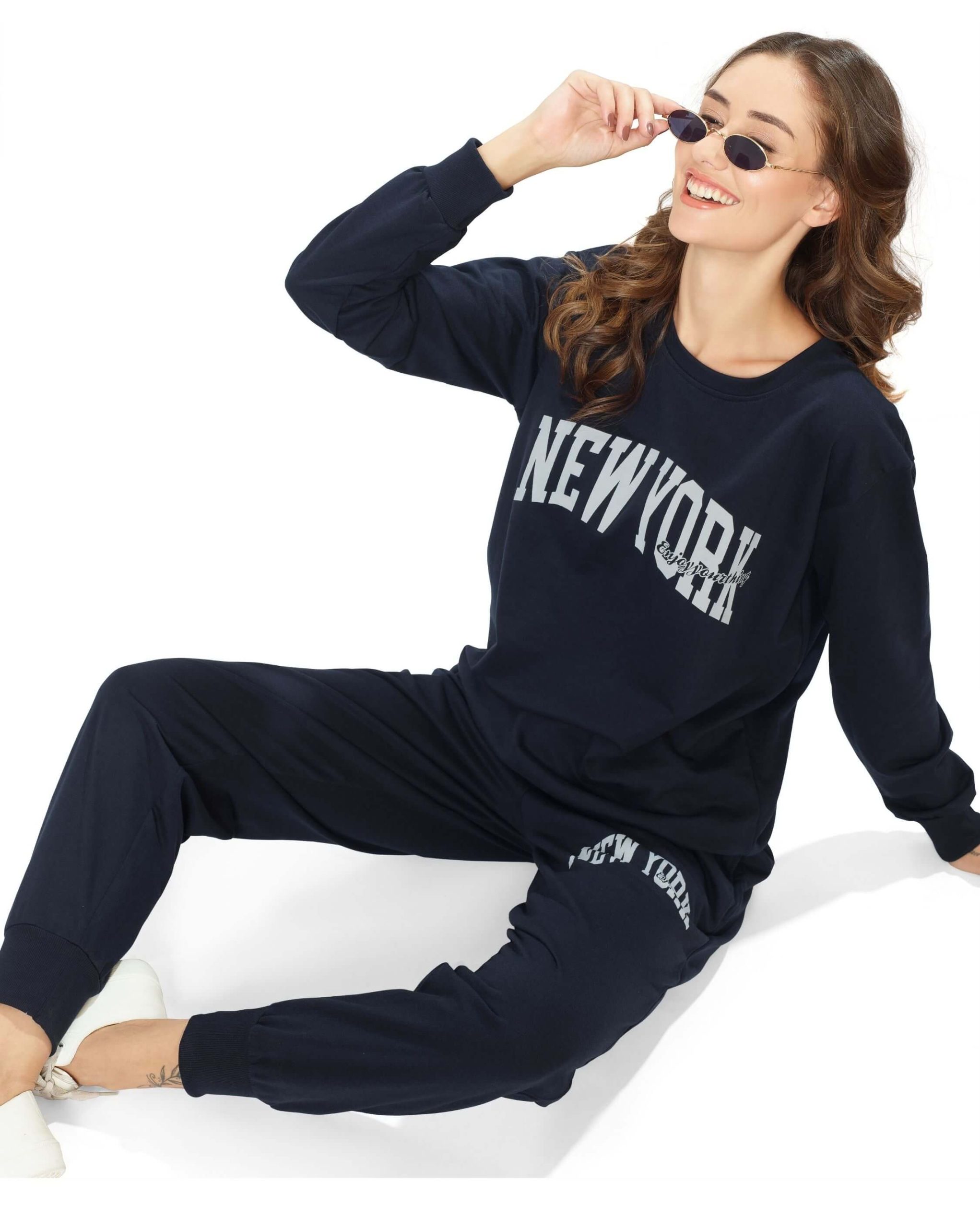 Unwind in style with the light grey “Weekend Mode” joggers and t-shirt set. Designed for ultimate comfort, this joggers with top for ladies outfit is perfect for lounging, traveling, or running errands. The soft, breathable fabric keeps you at ease all day, making it an essential piece for casual wear.