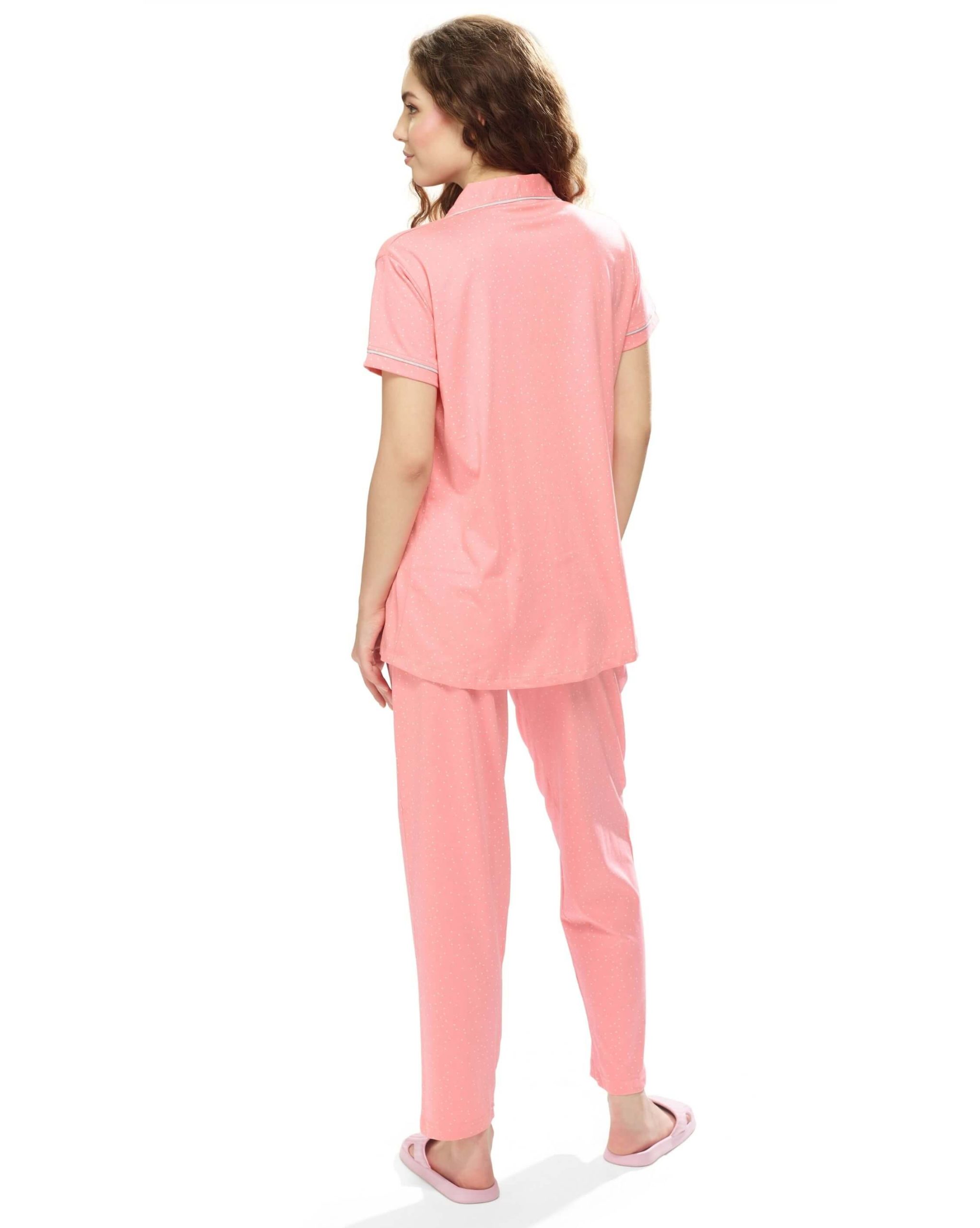 The WEET Night Suit for Women in Peach with Small Dots combines elegance with comfort. Made from soft cotton, this night dress of shirt and pyjama set is perfect for unwinding after a long day or enjoying a lazy weekend. The delicate dotted design adds a subtle yet stylish touch to your loungewear, while the comfortable fit ensures a restful night’s sleep or relaxing moments at home. Stay cozy and chic with this beautiful peach-toned set, ideal for those seeking a perfect balance of comfort and style.