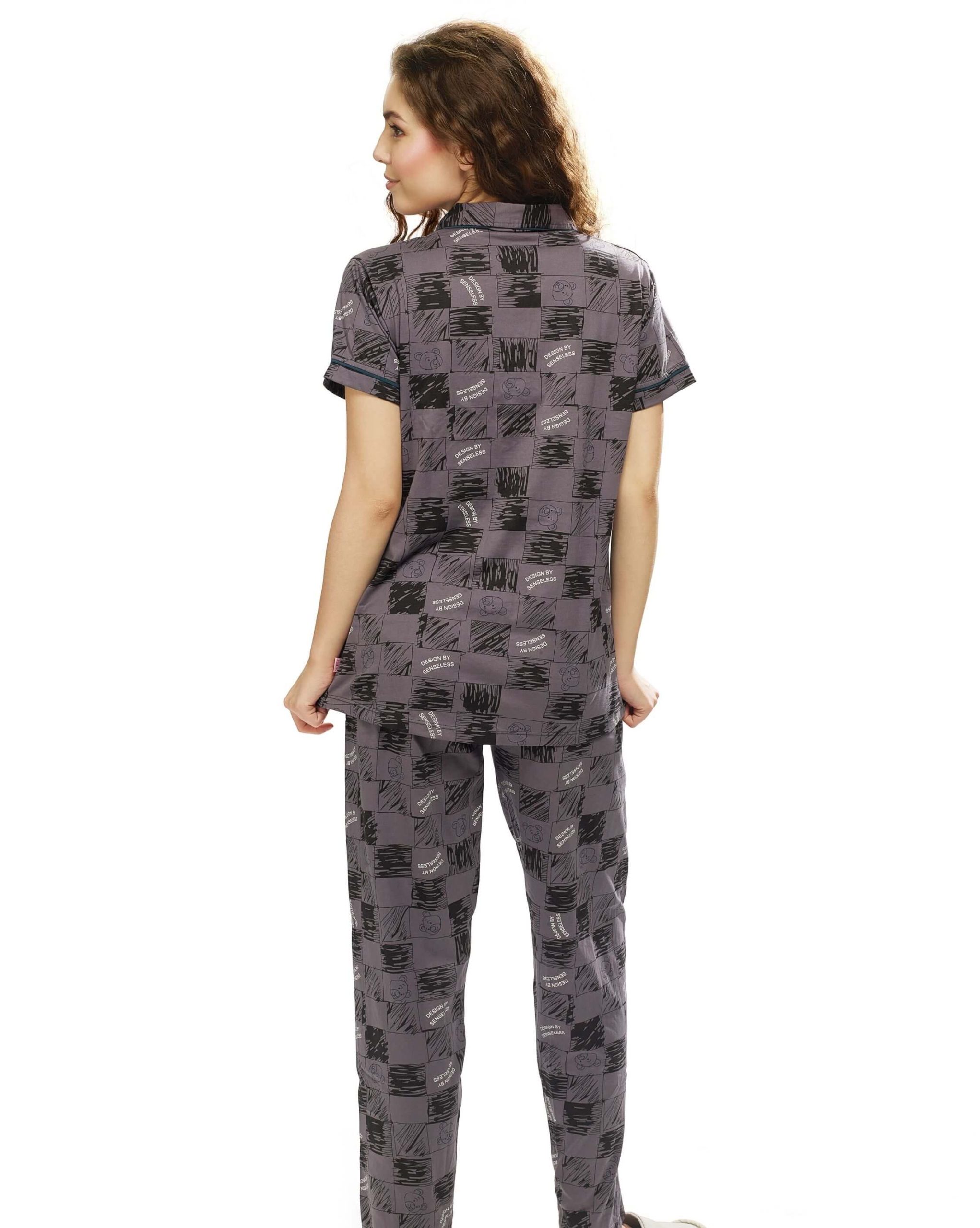 Experience unmatched comfort with this women’s purple boxed shirt and pyjama set. Designed with a stylish boxed print, this set offers a perfect blend of fashion and relaxation. The breathable cotton fabric feels gentle on the skin, while the full-sleeve button-down shirt adds a classic touch. Paired with easy-fit pyjamas, this women’s nightwear set ensures you stay comfortable whether you’re lounging at home or winding down for the night.