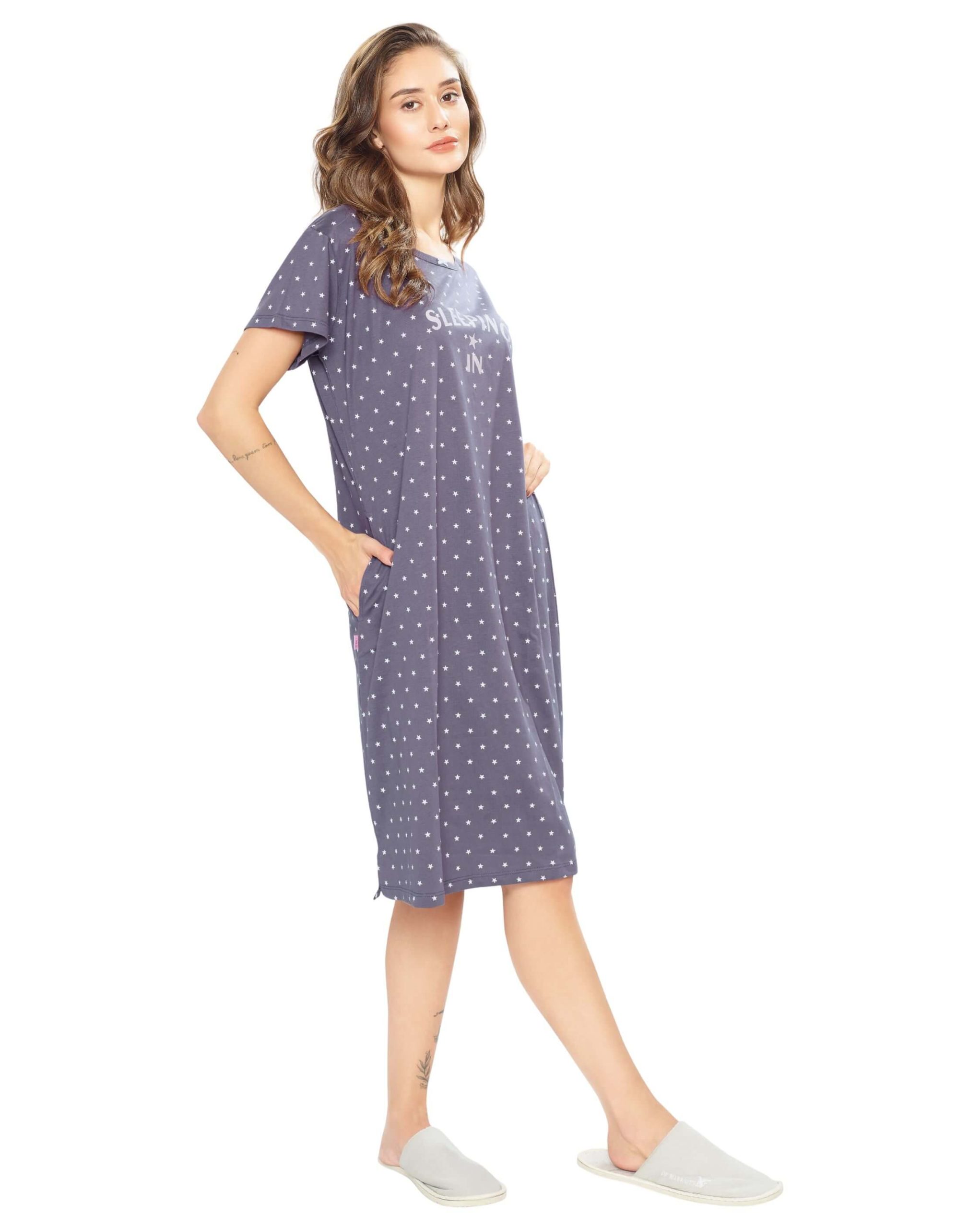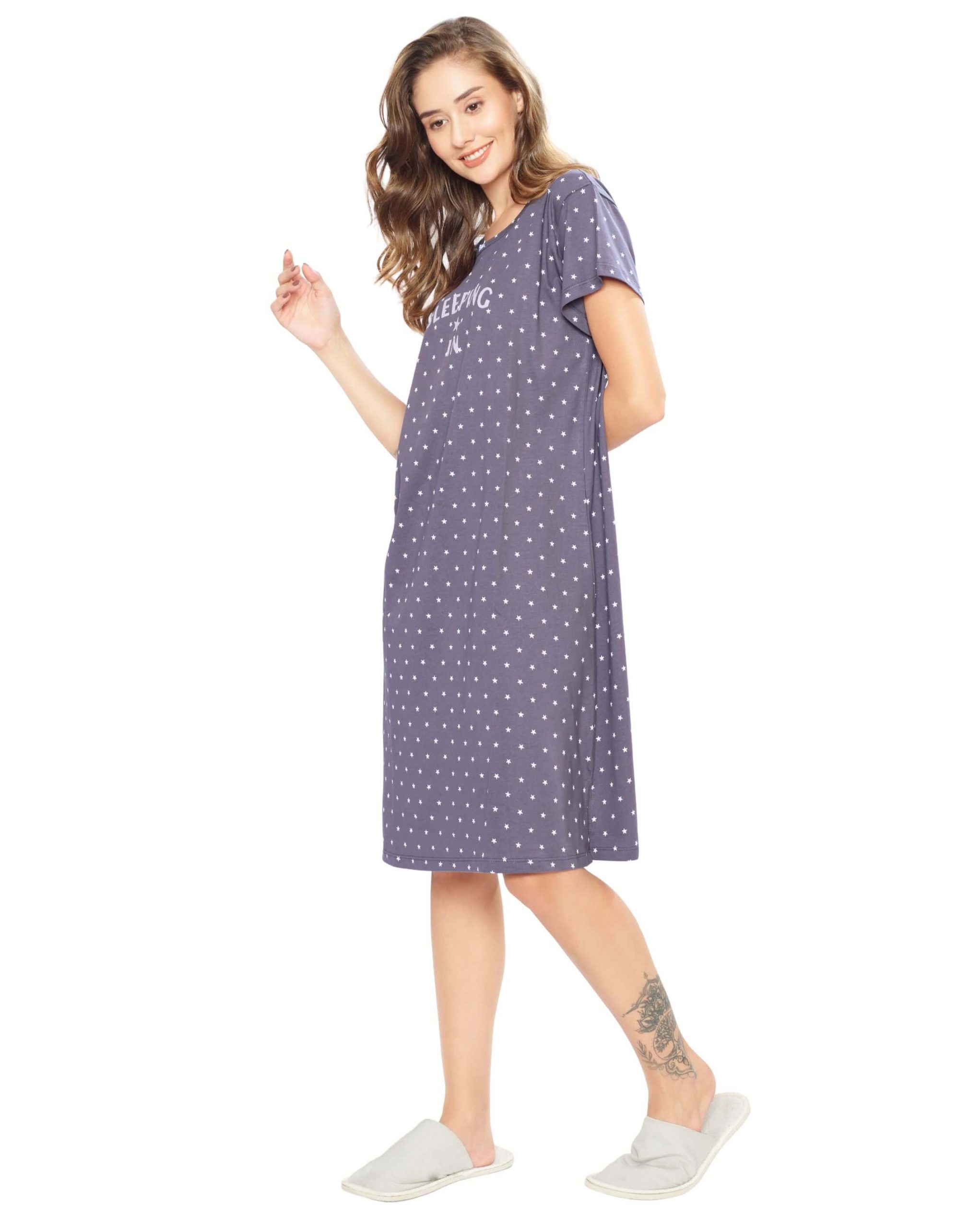 Add a playful touch to your nightwear collection with this Purple star Printed Short Nighty. Featuring a charming dotted design, this nighty is crafted from soft, breathable fabric for a cozy, relaxed fit. Ideal for lounging, it brings a hint of style to your evening routine while ensuring all-night comfort.