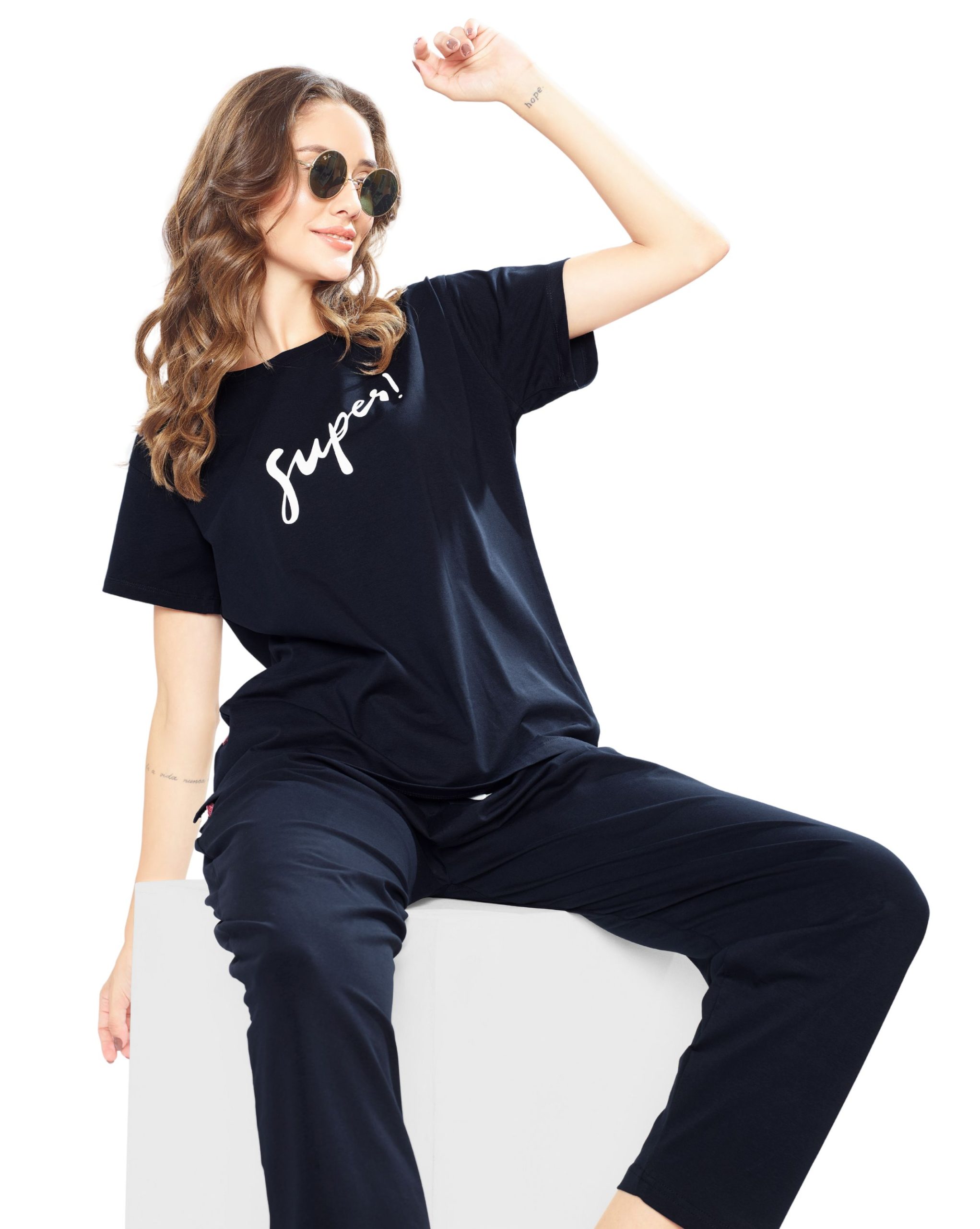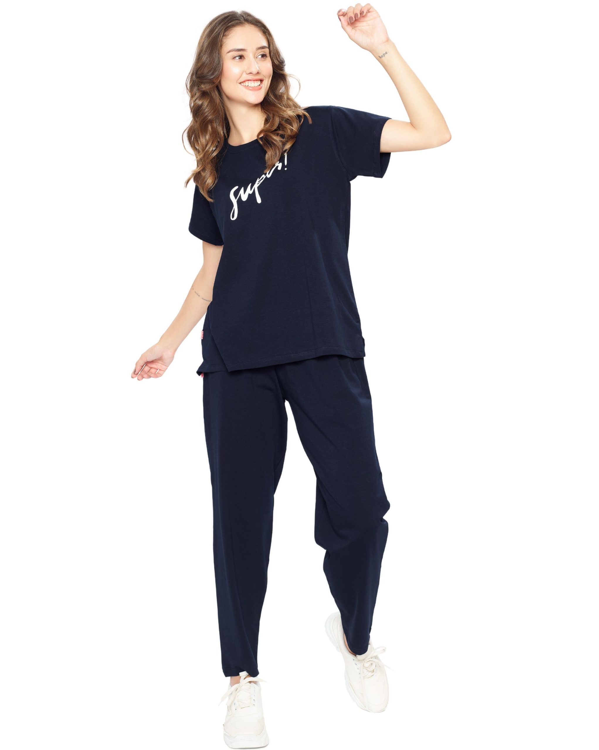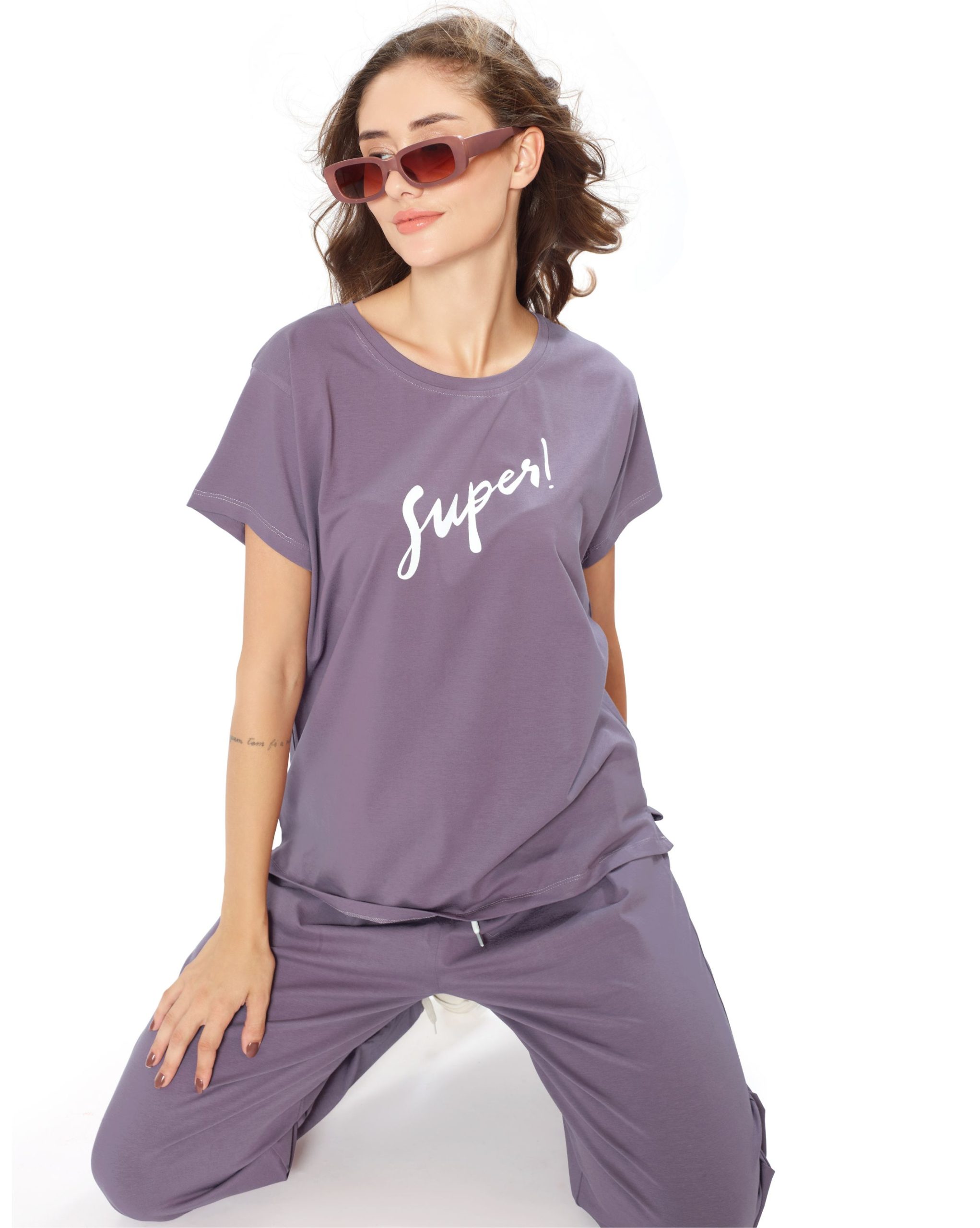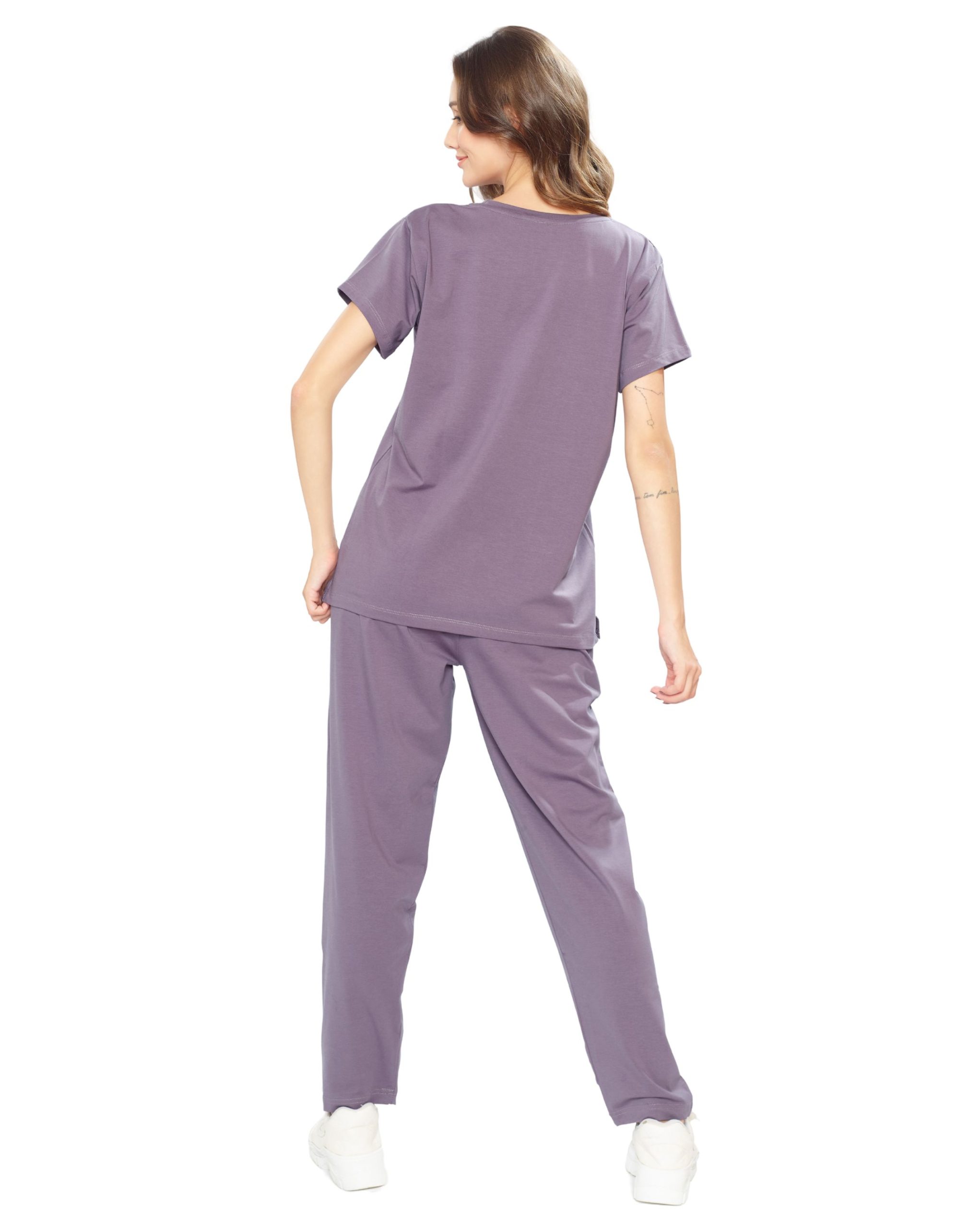 Experience ultimate comfort with the Women’s Round Neck Pyjama Set in Purple and black. This cozy two-piece set features a classic round neck top with half sleeves and matching pyjama bottoms, ideal for a good night’s sleep or lounging around the house. Crafted from a soft cotton blend, it ensures you stay comfortable all night long.