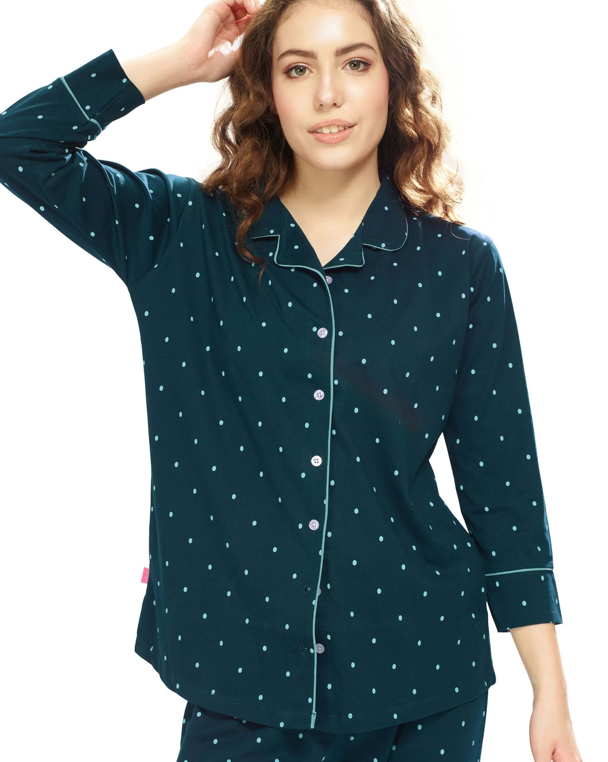 - Bottom: Coordinated pyjama pants with elastic waistband for a snug fit